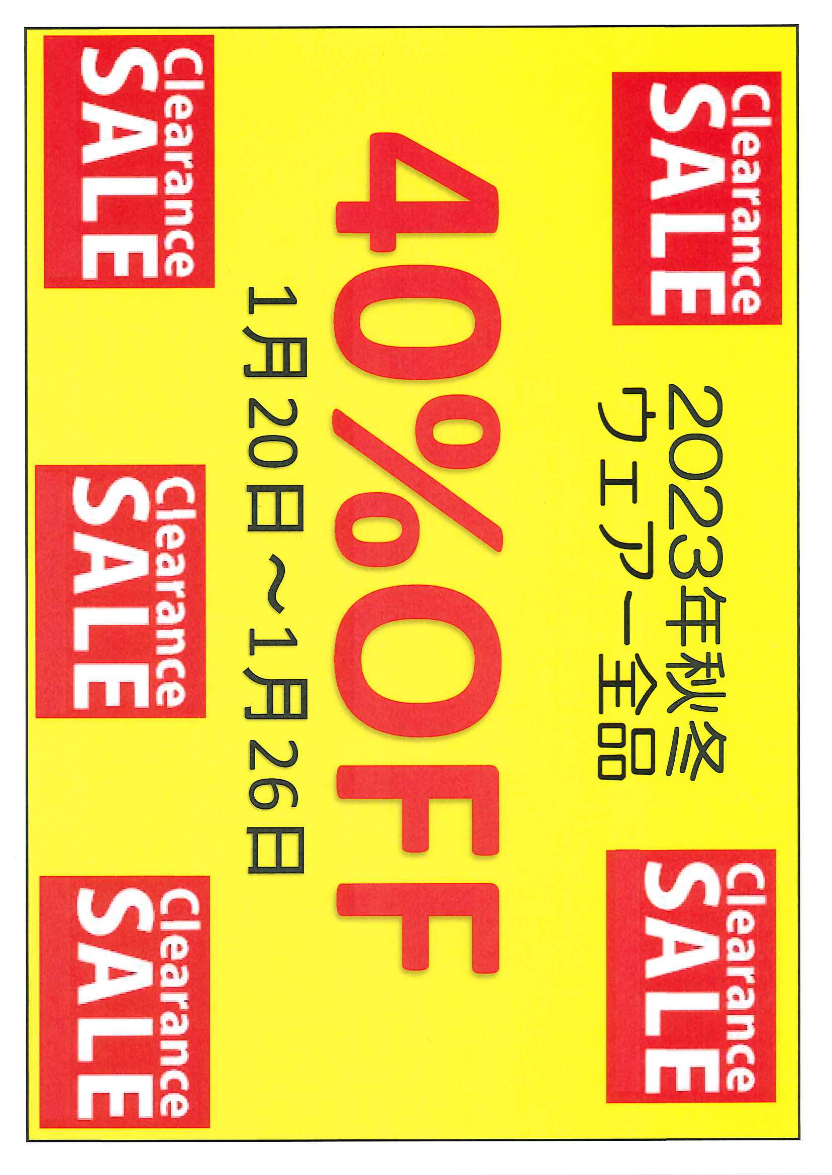 ただ今、2023年秋冬ウエアーのセール開催中です
