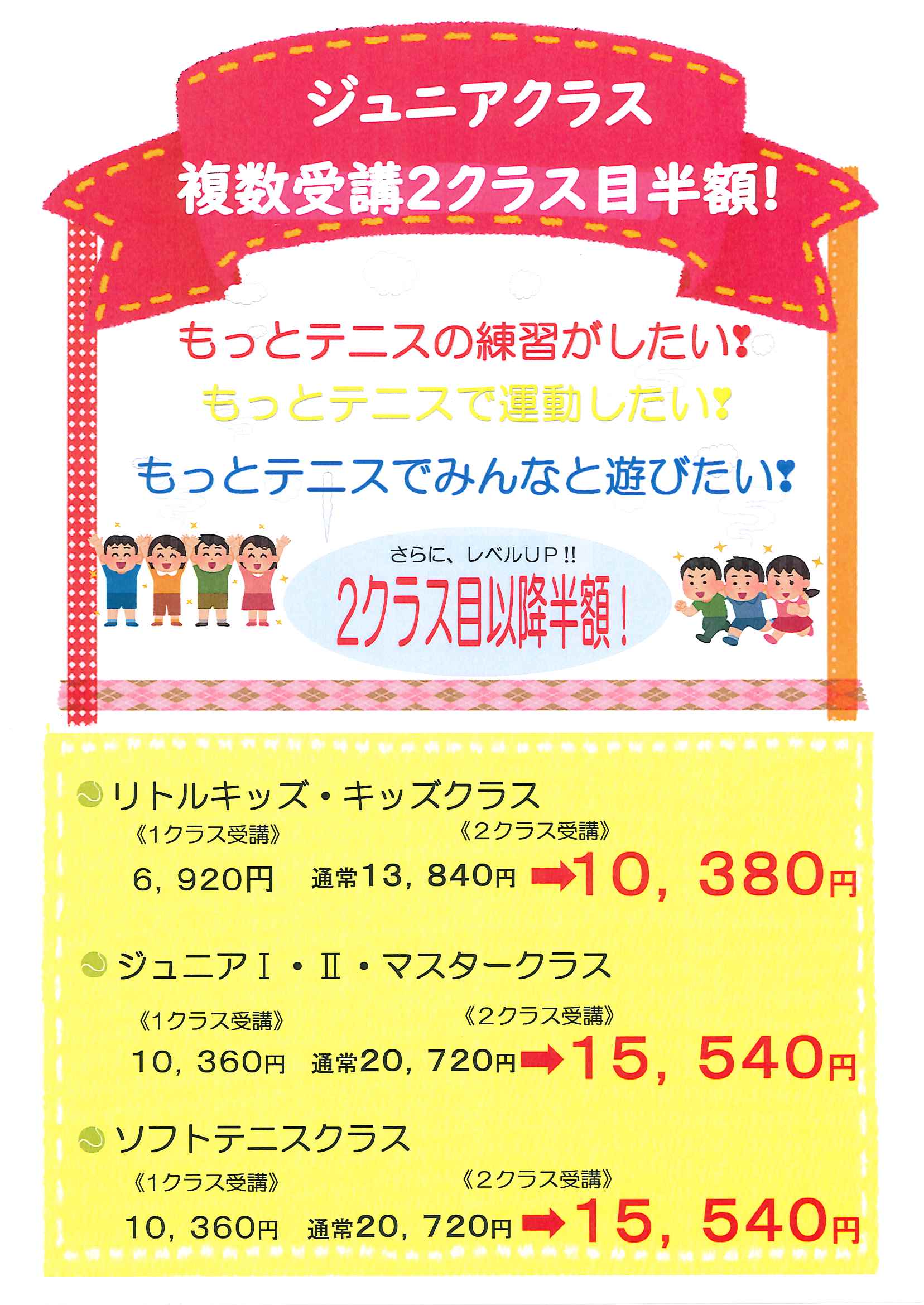 ★ジュニアクラスも2クラス目以降の受講料が半額!!