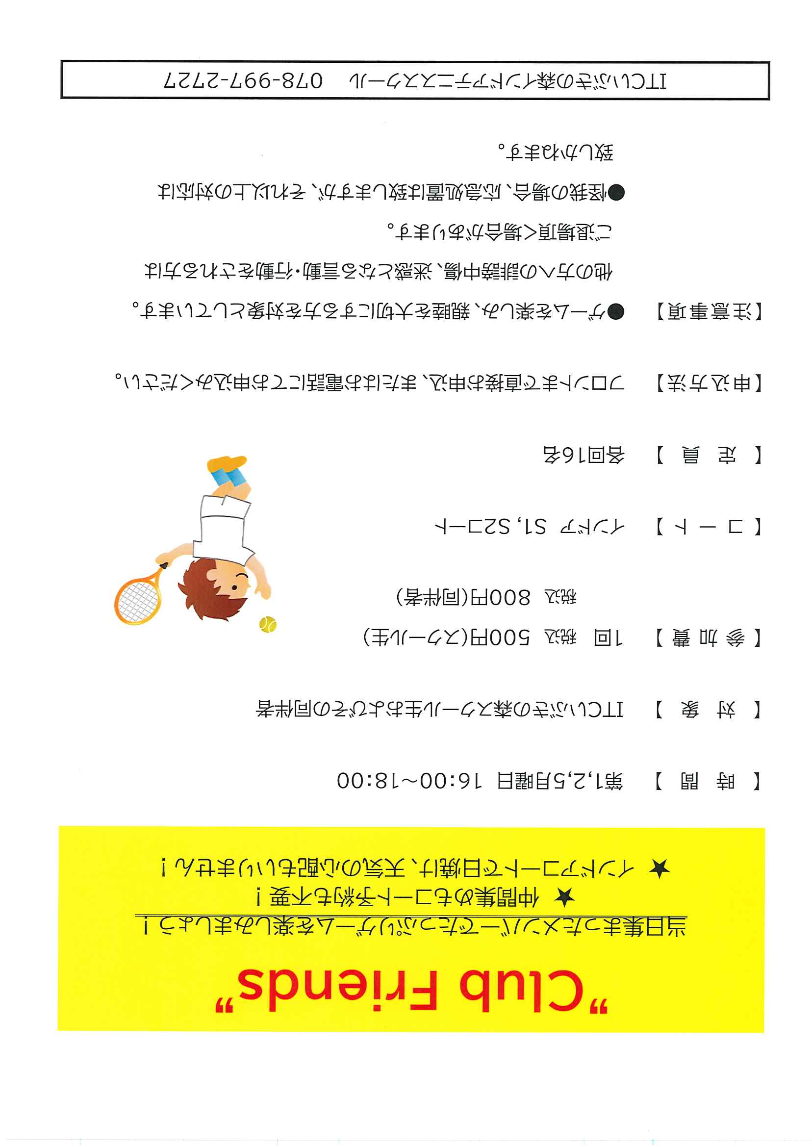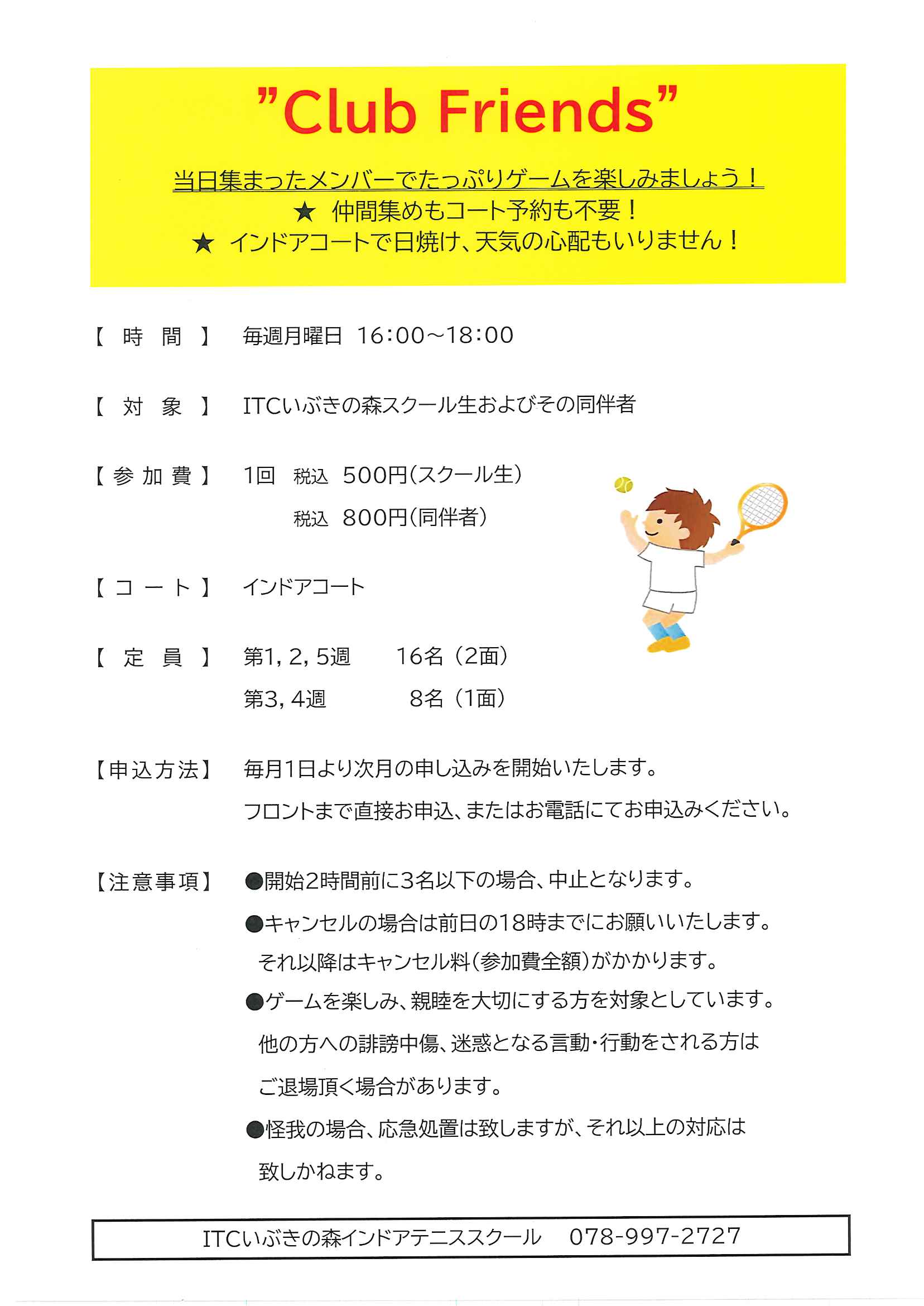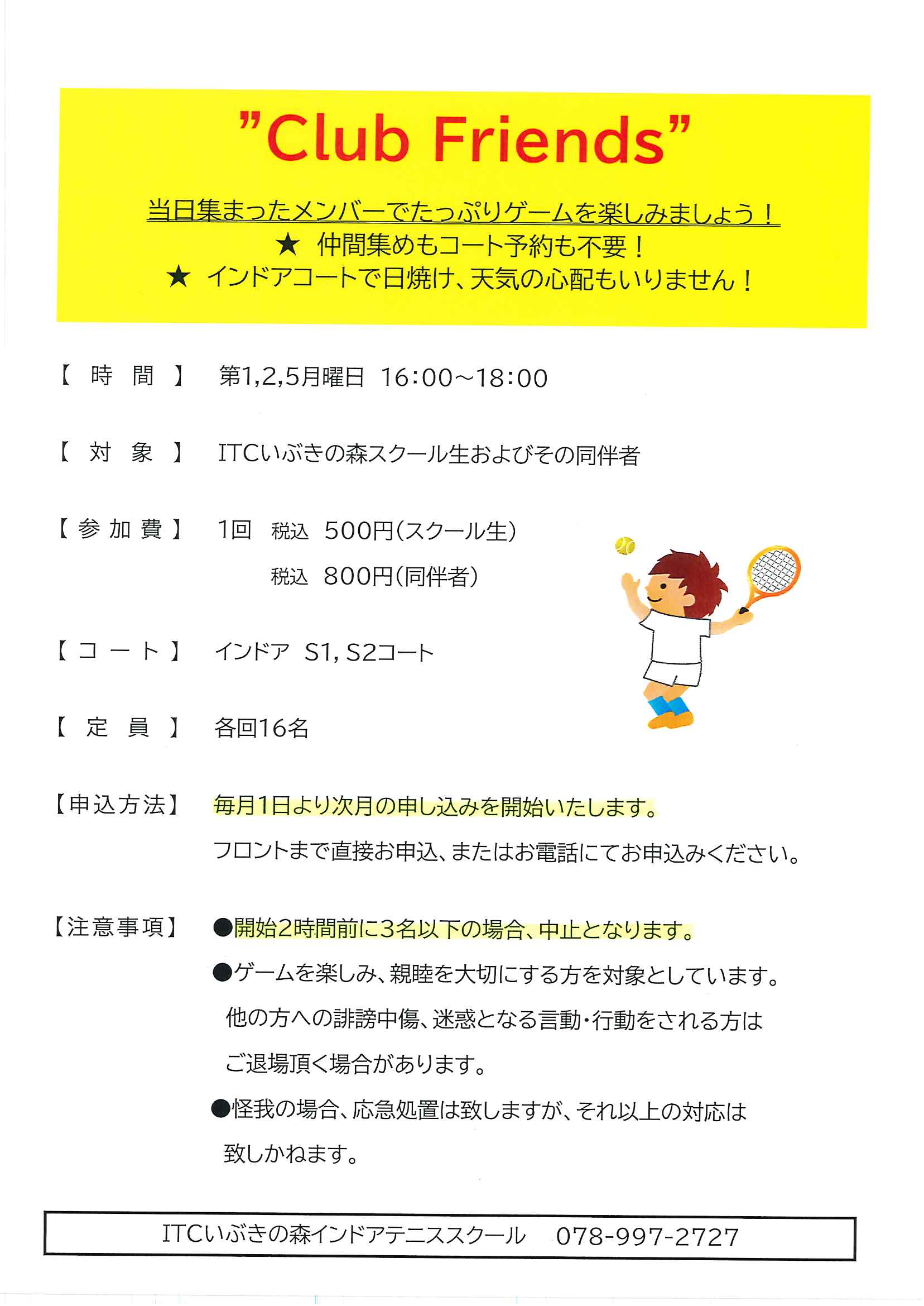 テニスが大好き、時間があればゲームを楽しみたい!方にピッタリの『Club Friends』を開催します