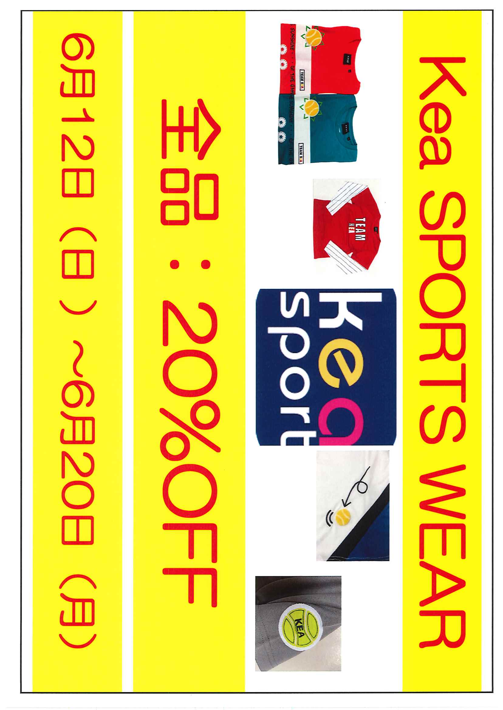 テニスボールのワッペンで人気の『kea』のウェアーセールが始まります