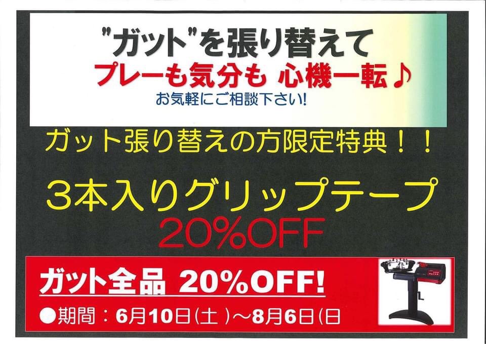 🎈新規ラケット購入またはガット張替えと同時購入で、3本入りグリップテープが全品20%OFF🎈
