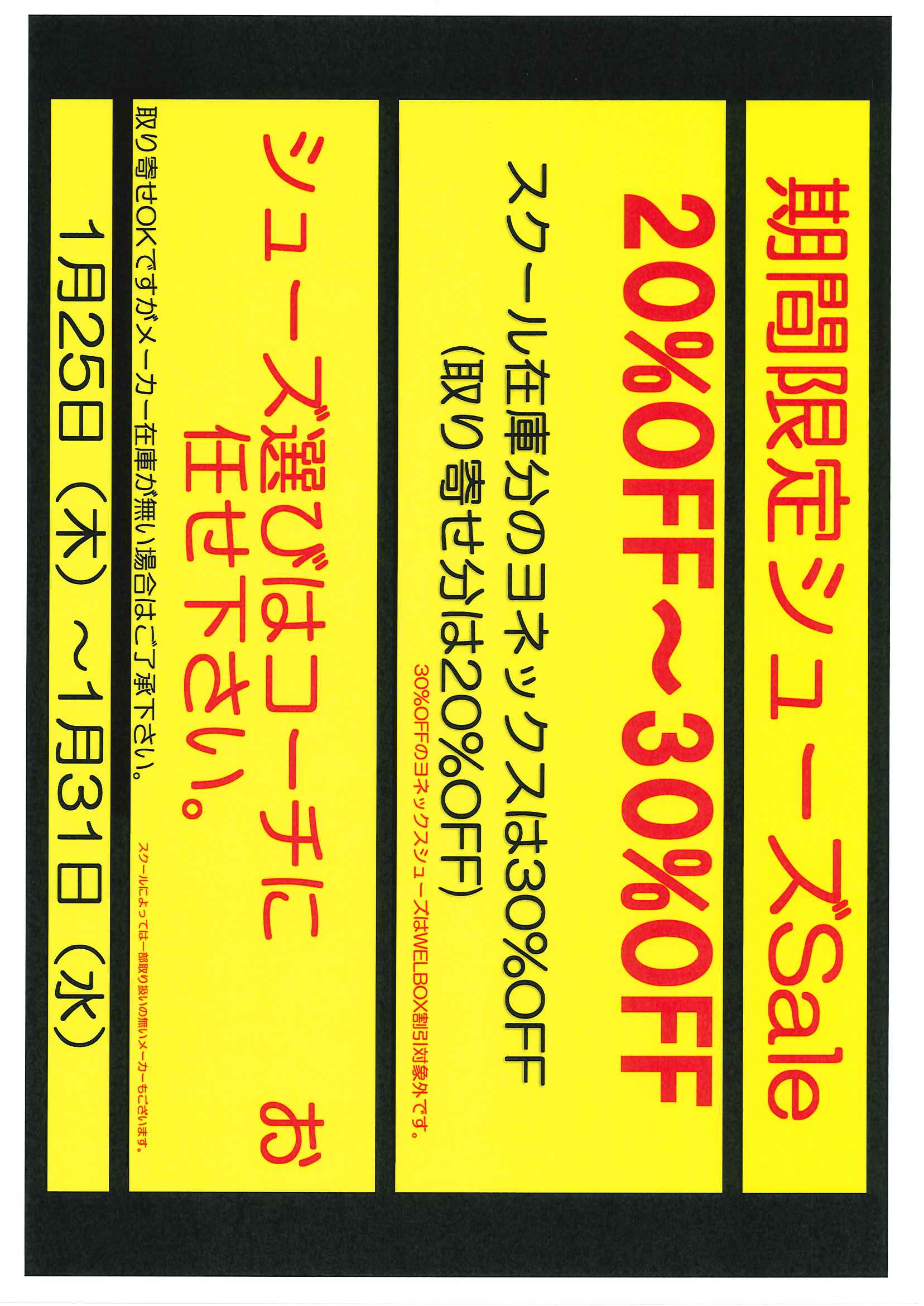 下記の通りシューズキャンペーンを行います!