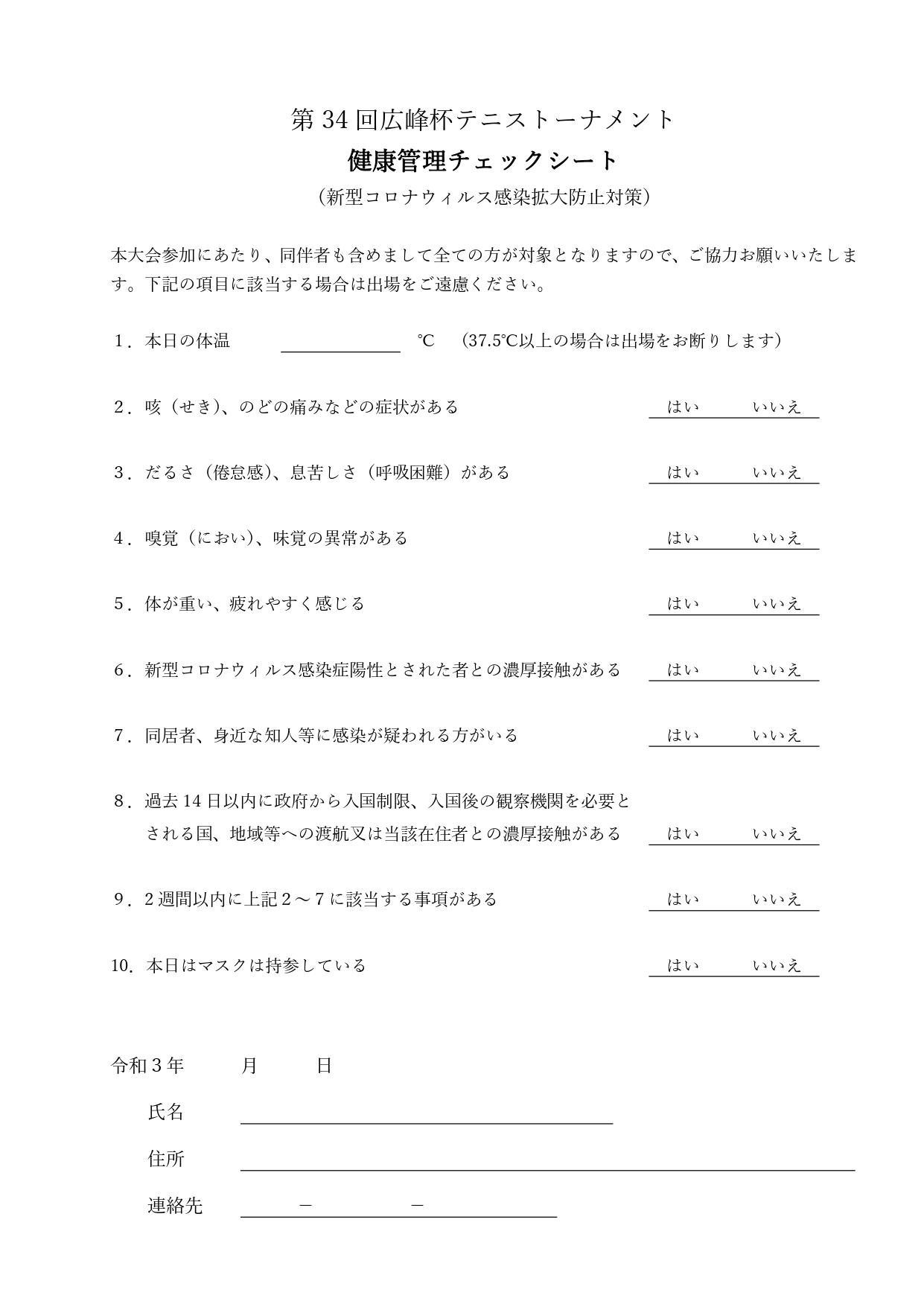 当日は、健康管理チェックシートの提出、マスク着用の徹底をお願い致します。