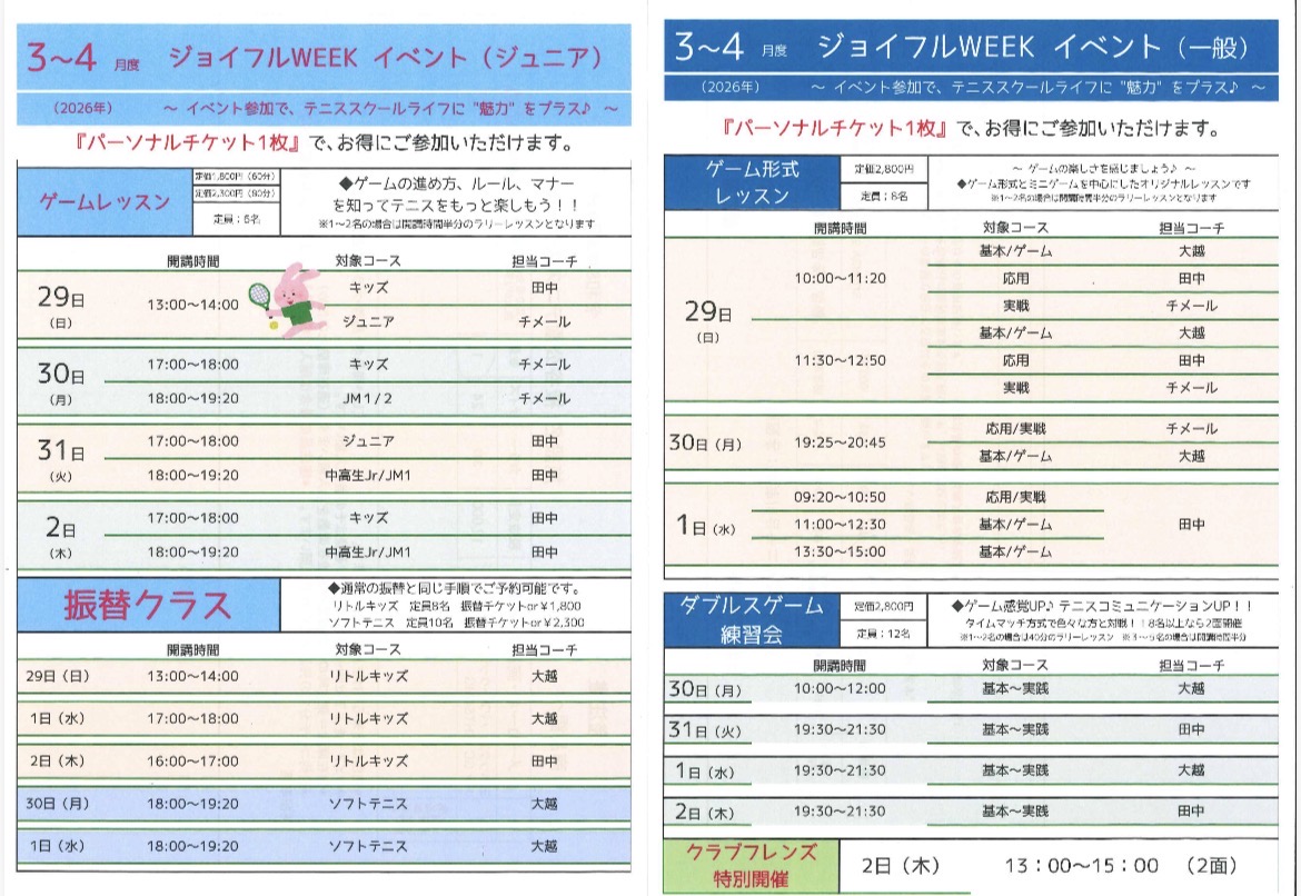 3月29日(日)〜4月2日(木)にかけての「ジョイフルウィーク」となっています!
