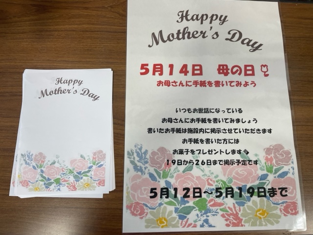 5/12から5/19までの1週間施設内にお手紙セットを設置しているので