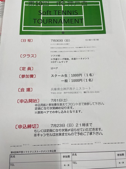 第10回ITC神戸西ソフトテニストーナメントを開催します🏆✨