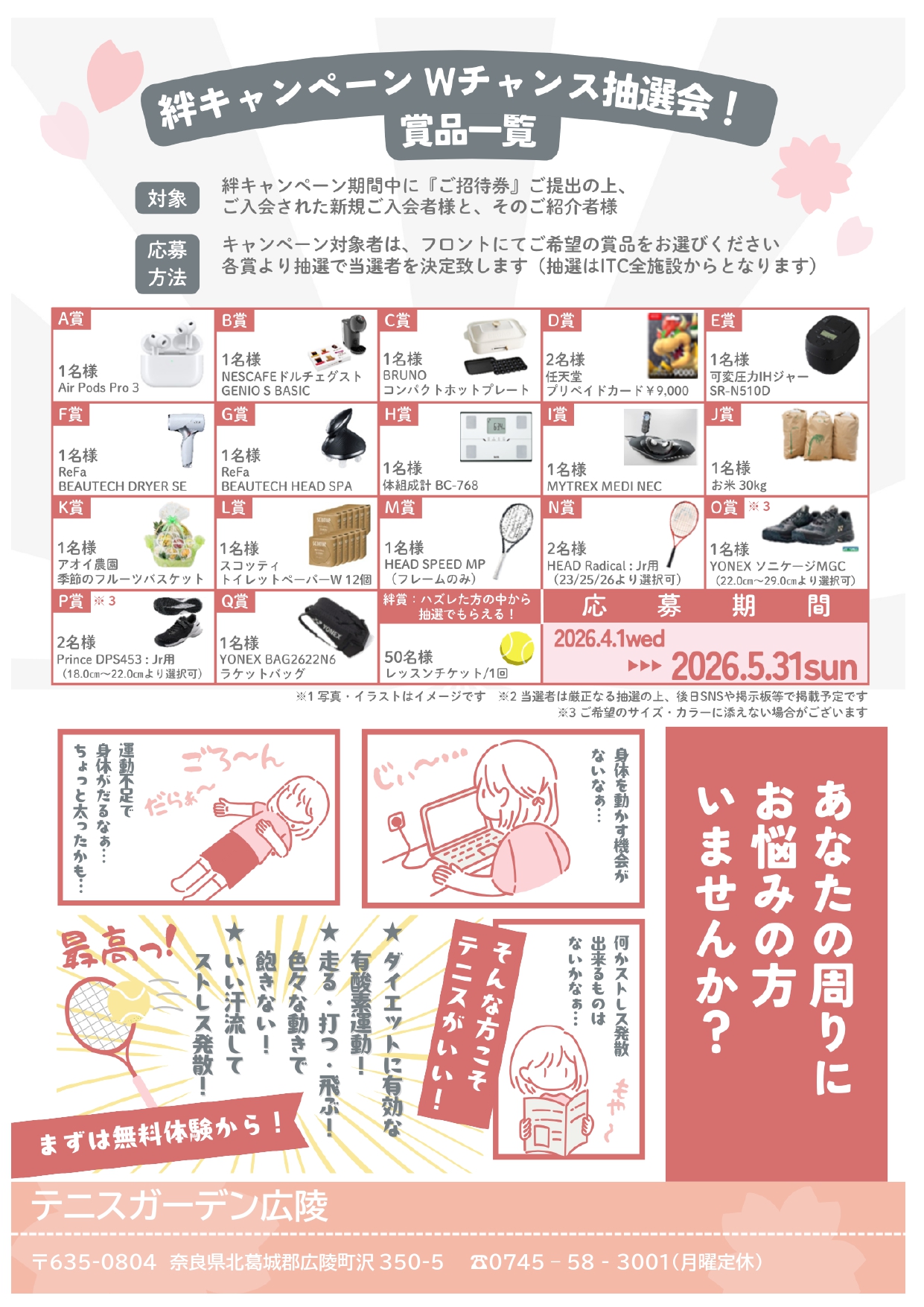 体験を受講されると、体験者・紹介者共お楽しみ抽選に応募していただけます