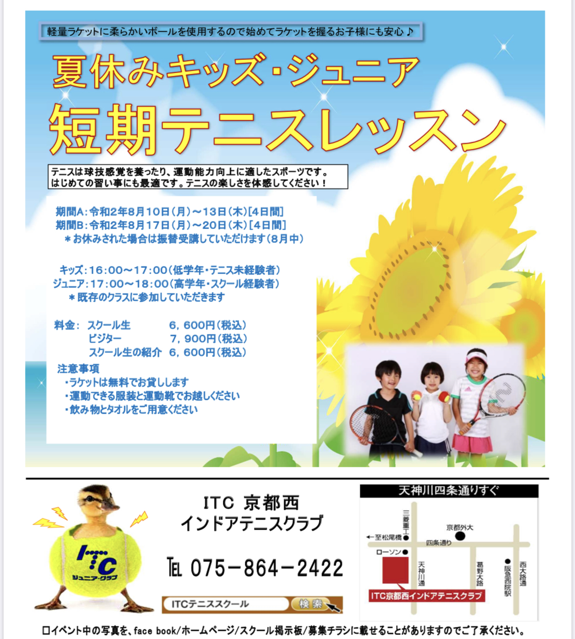 夏休みキッズ.ジュニア短期テニスレッスンを開催します🎾
