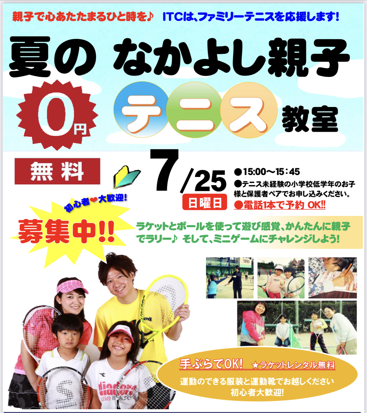 お子様と保護者の2人1組で楽しむ親子テニス教室を開催します!👪🎾彡