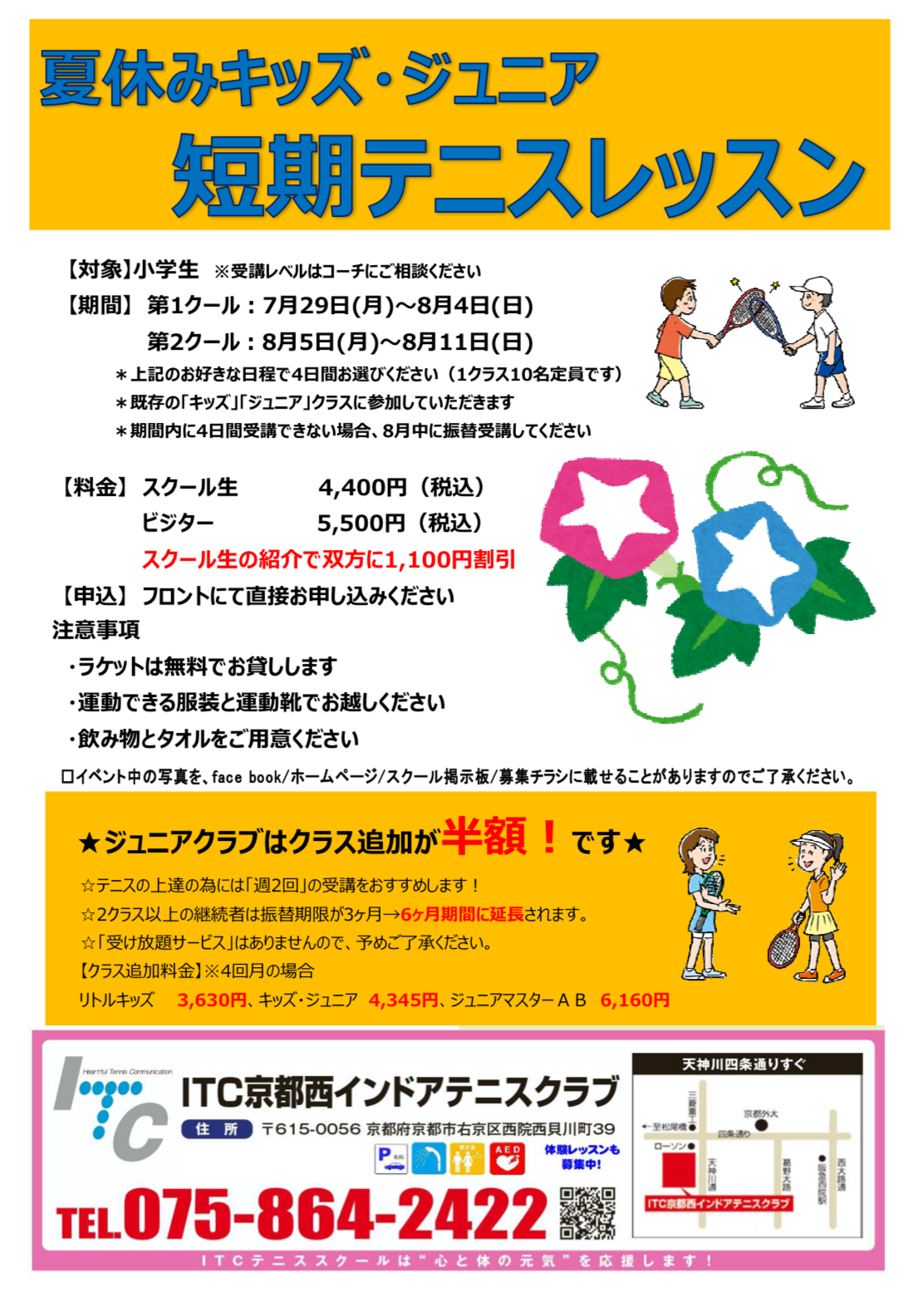 大人気企画『ITCジュニアテニスキャンプ』の日程が決定しましたのでお知らせいたします🎾