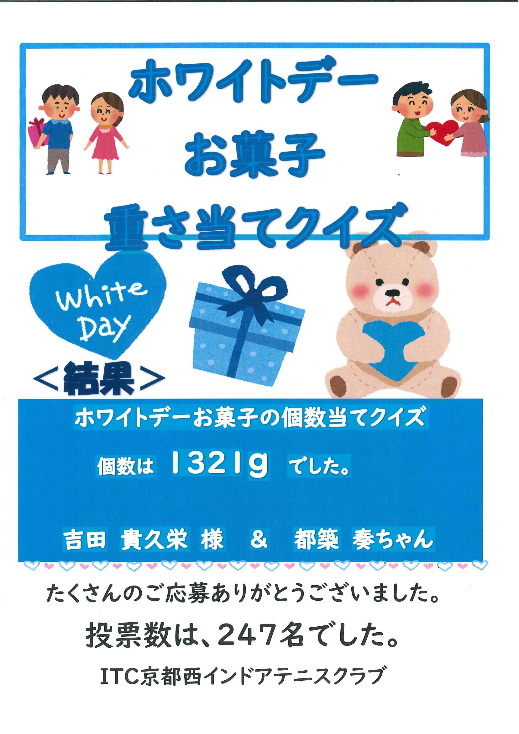 大変遅くなりましたが、ホワイトデークイズの結果を発表致します❗️