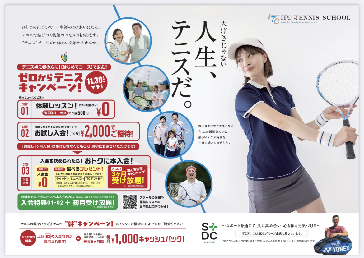 一緒にテニスをしたいと思うご友人はもちろん、会社の同僚やご家族を是非お誘いください。