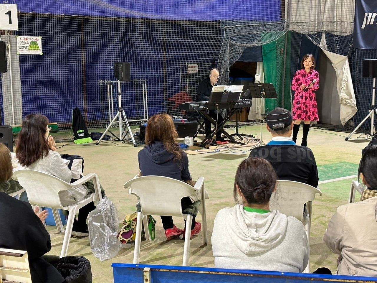 夕方からはITC京都西のテニスコートでは初となるコンサートを行い、インドアコートに