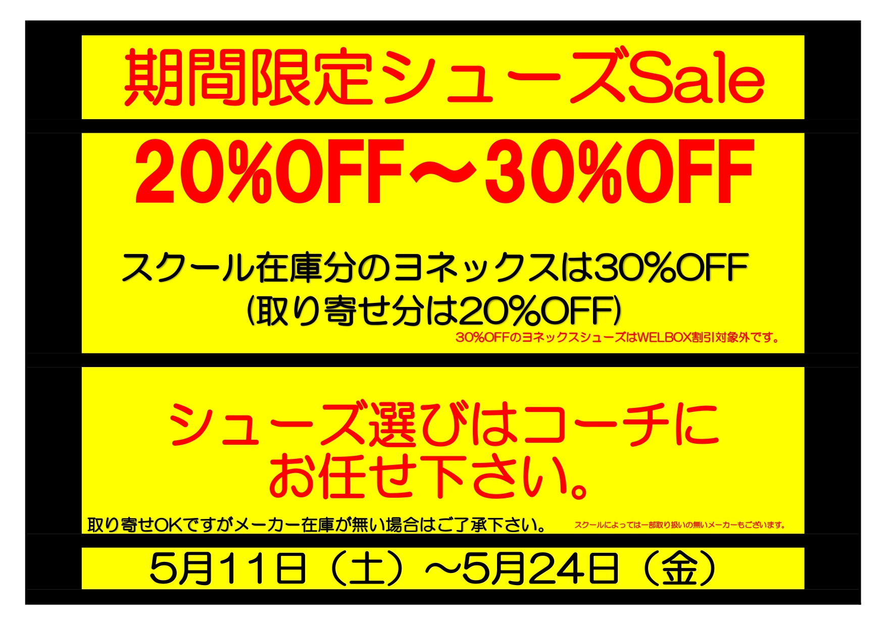 5月11日から24日までシューズが20%OFFになります👏