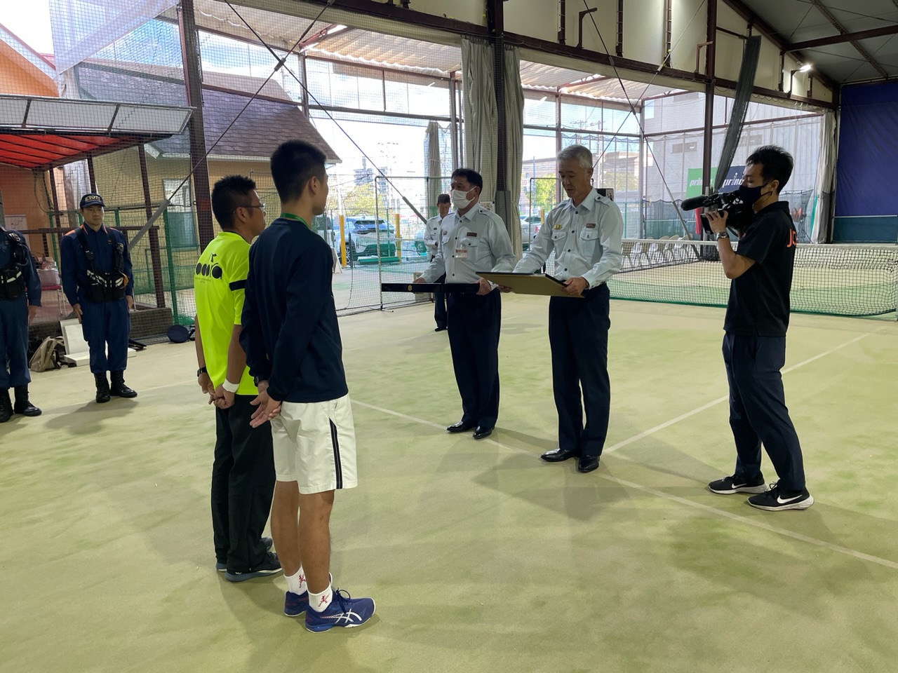 そして、先日館内で起きた救急事案に対して、迅速な対応で人命救助して事に対して西村コーチと徳永コーチに右京消防署より感謝状が贈呈されました。