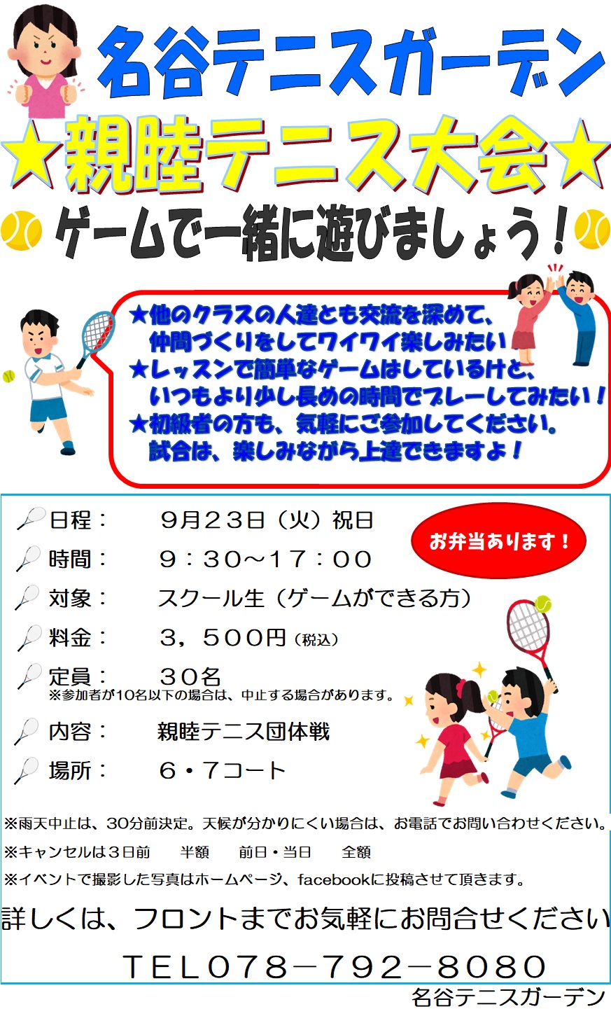 前回好評につき満員御礼だった「名谷 親睦テニス大会」を開催します!