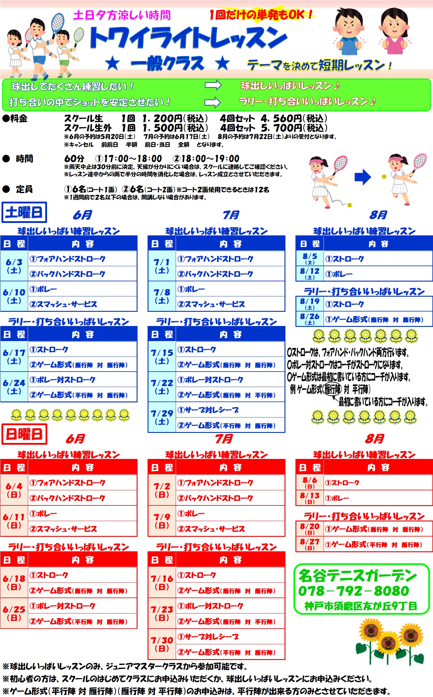 ジュニア・ソフトテニスクラスもあるので、テーマを調べて是非お申込みください。
