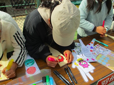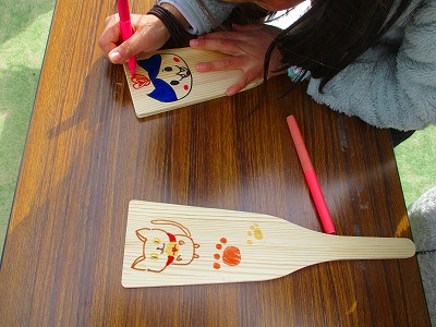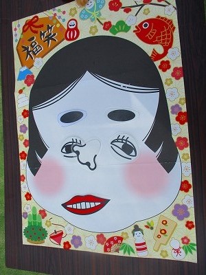 オリジナルの羽子板を作って遊んだり、コマ回しや福笑いなど、、