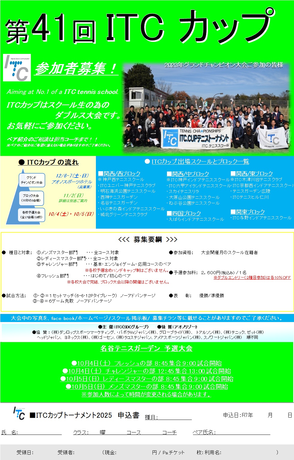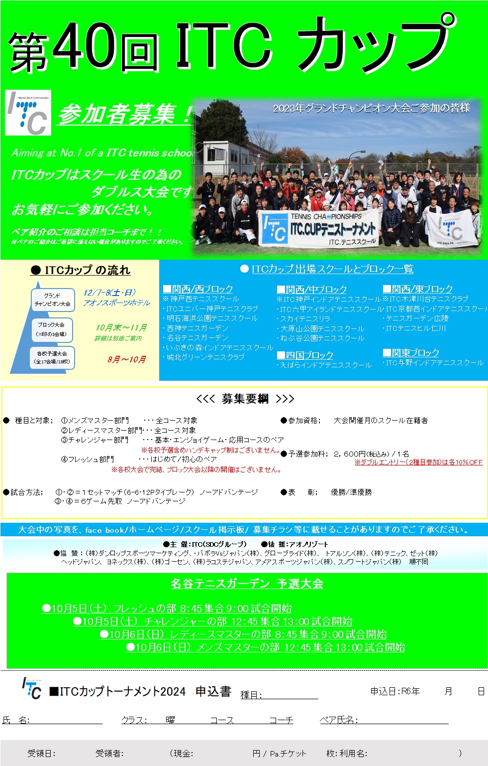 各施設で予選を行い、上位2名~3名が 8/3(土) にITC神戸でチャンピオン大会に出場します。