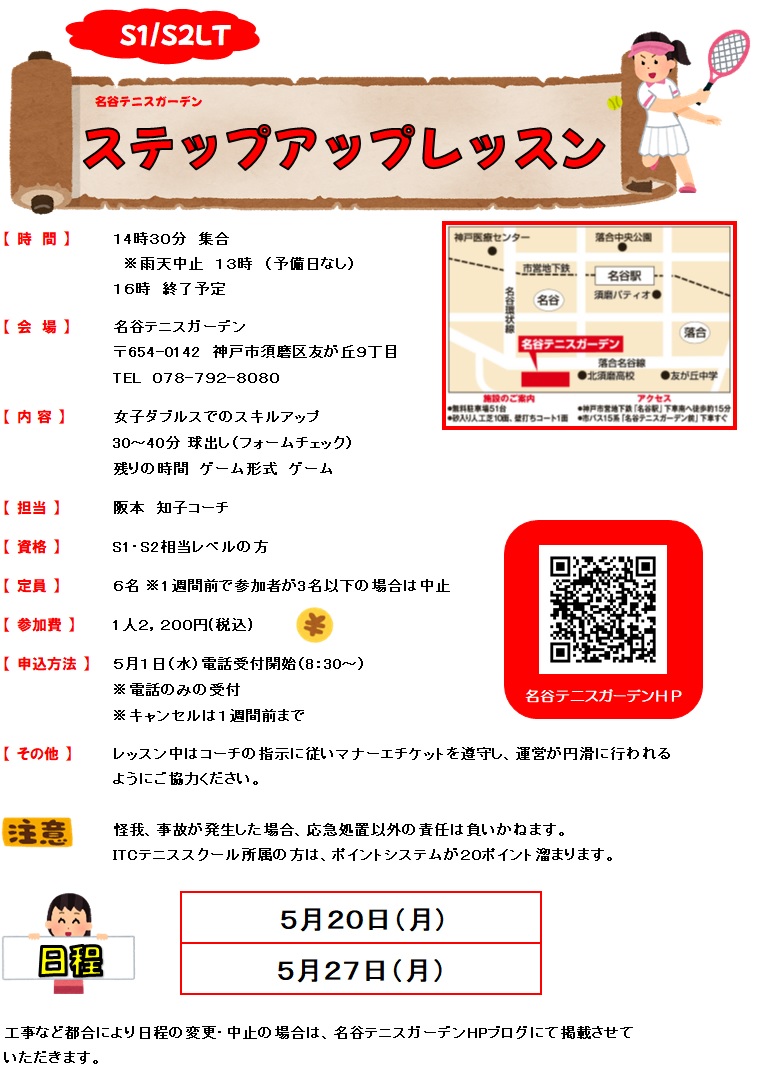 5月のステップアップレッスンの日程が決まりました。