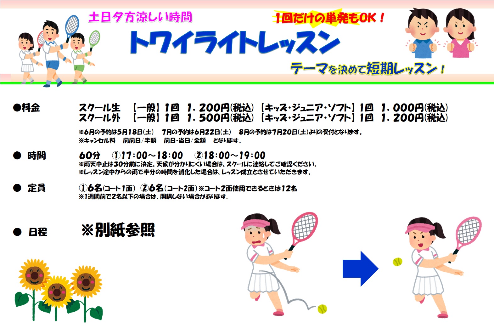日が長くなるこの時期限定の「トワイライトレッスン」のご案内です。
