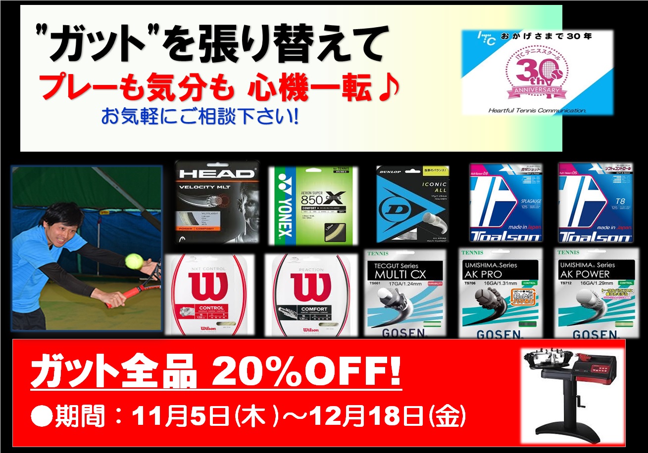 11月5日~12月18日までITCテニススクール恒例の「ガットキャンペーン」がスタートします。