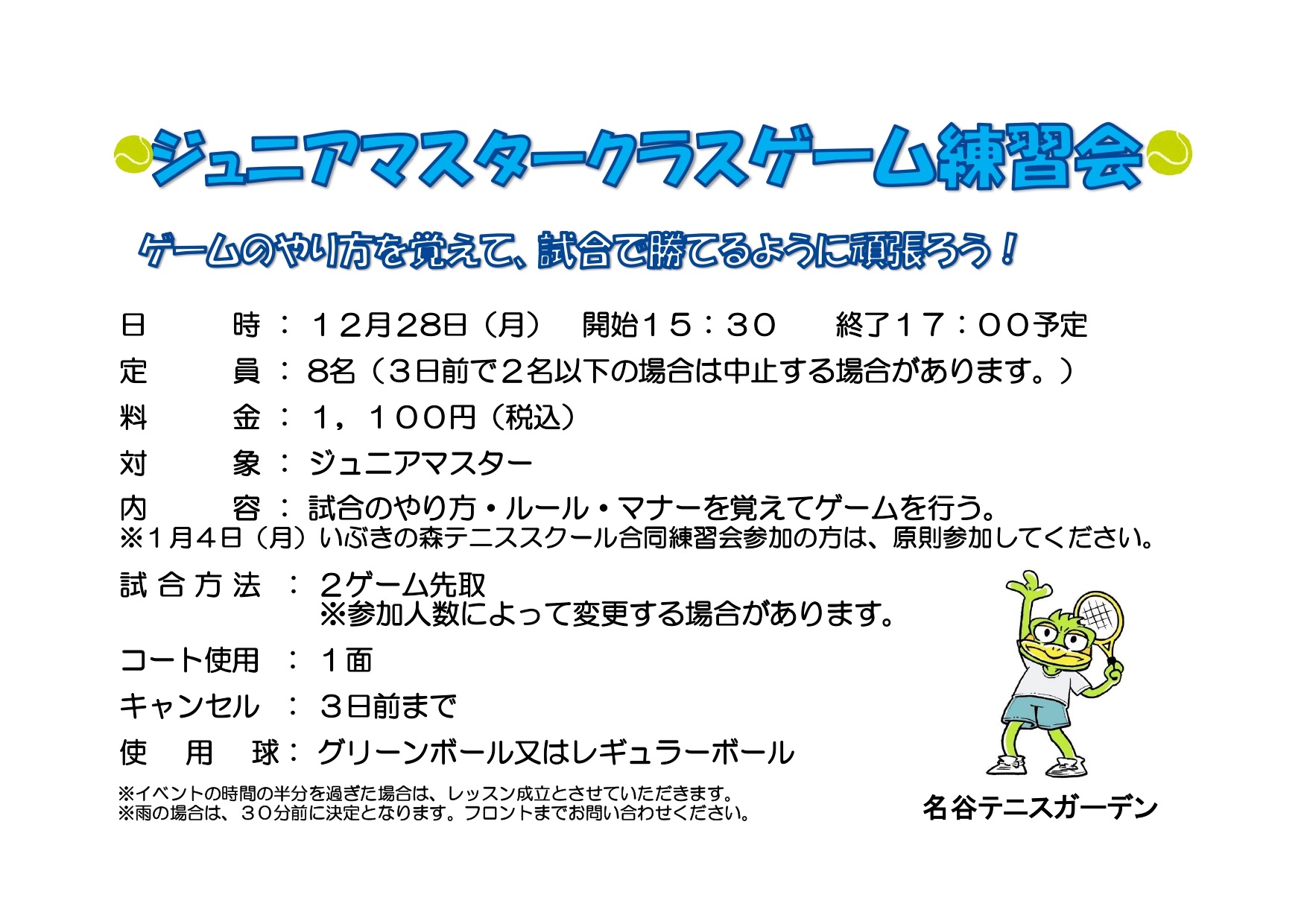 原則 1月4日8校合同ジュニア大会参加のお子様はこのイベントにもご参加ください。