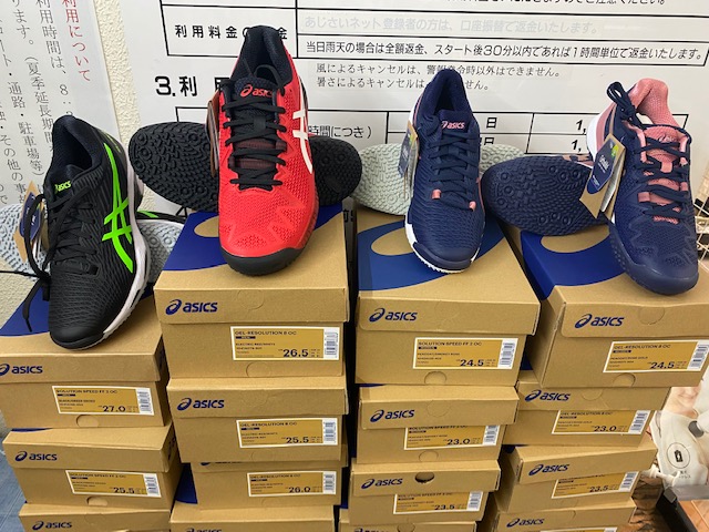 ただいま名谷テニスガーデンでは、アシックスのNEWシューズを2割引で販売中です。