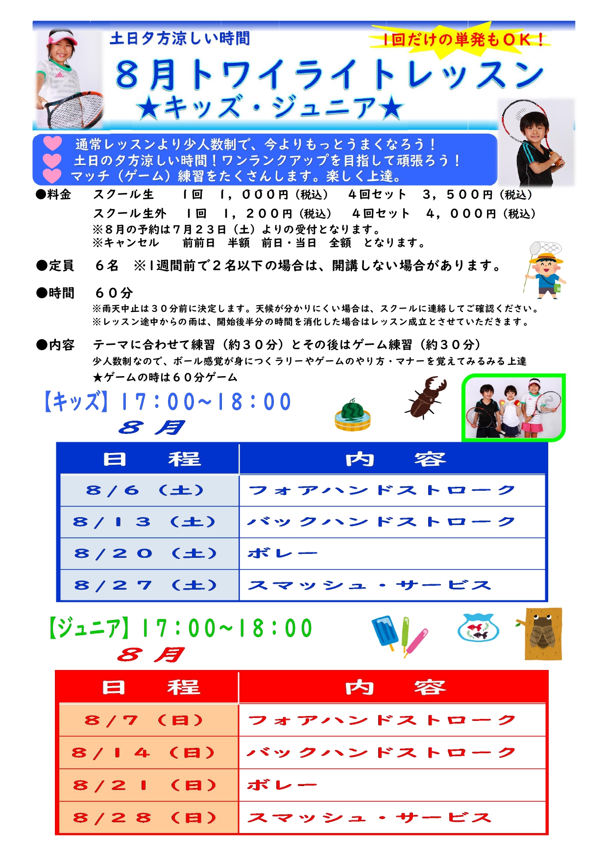 8月の申込みが7月23日(土)より受付開始となります。