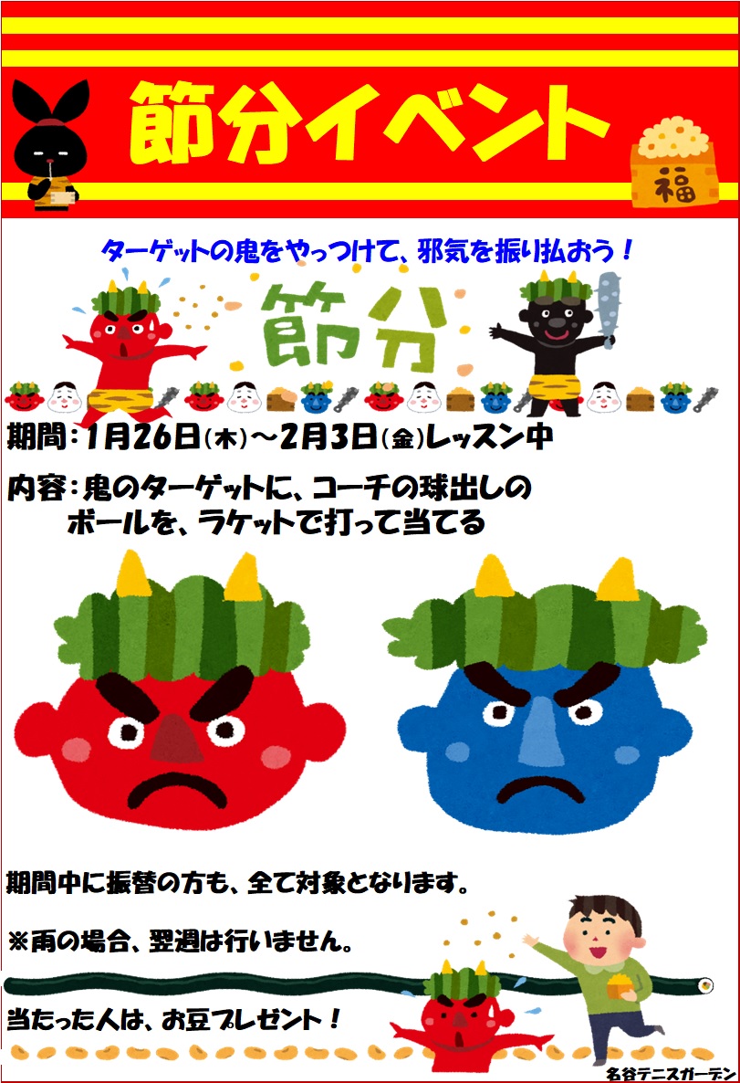 期間:1月26日(木)~2月3日(金)の1週間 レッスン中