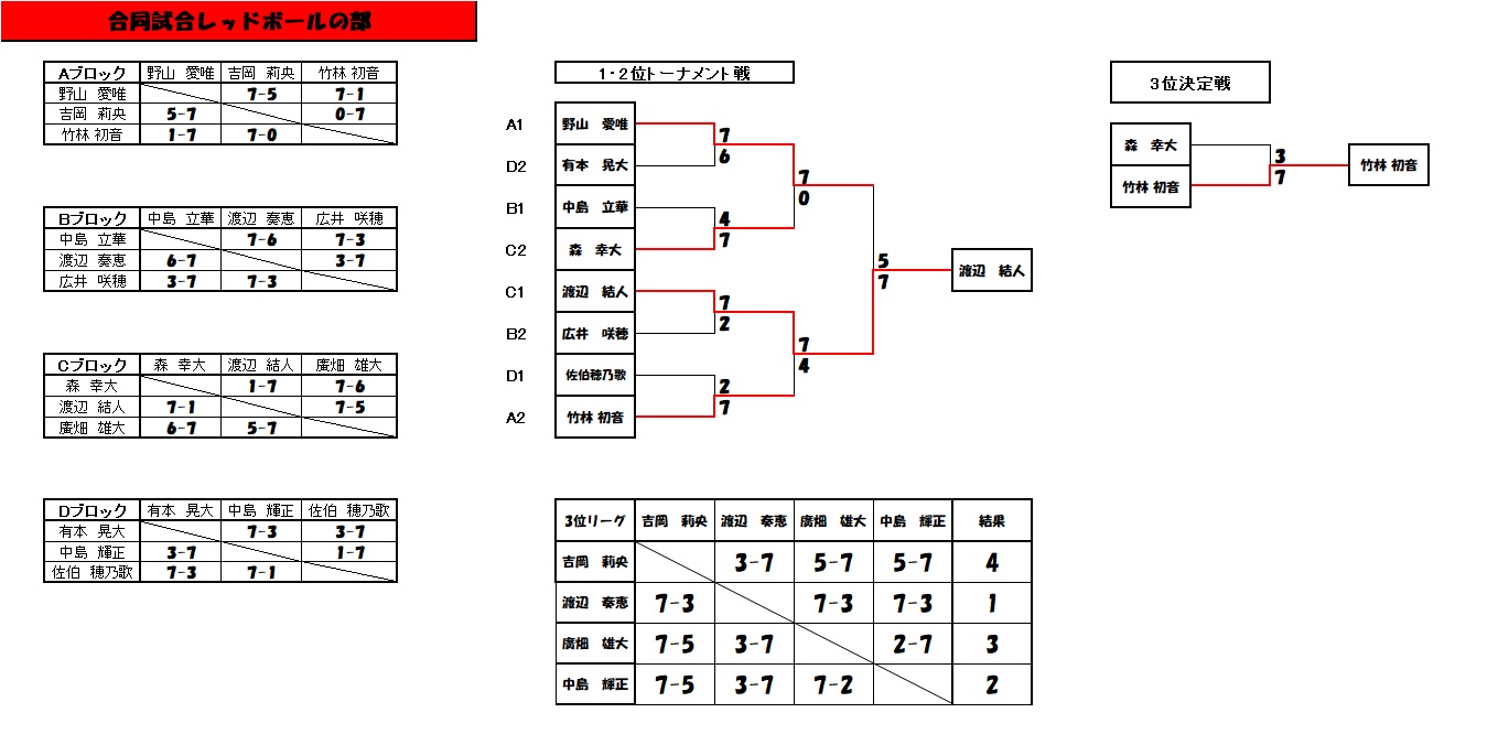 1/16(金)★名谷S2以下団体戦レディーストーナメント試合結果★ (01/17)