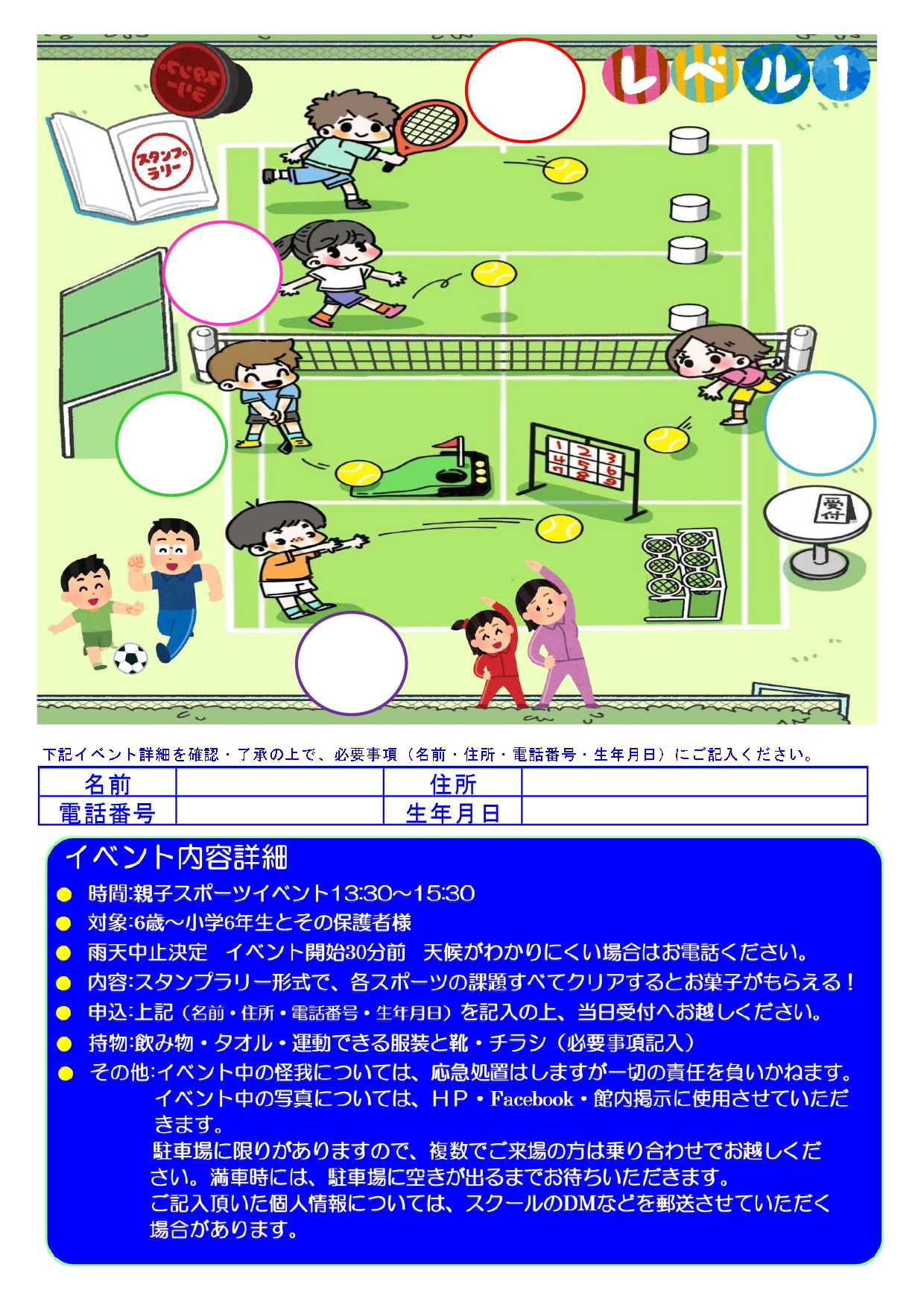 親子で一緒に、5つのスポーツの課題をクリアするイベントです。