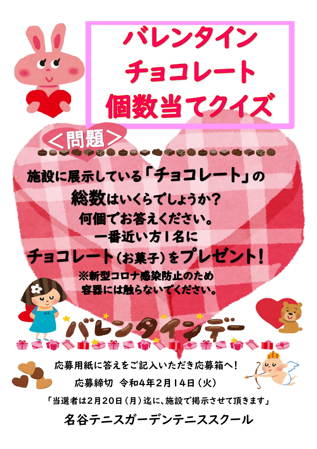 バレンタイン個数当てクイズを行っています。(スクール生対象)
