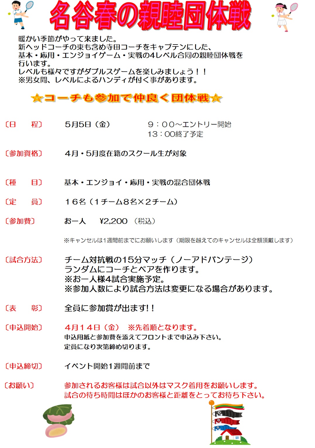 5月5日(金・祝) 親睦団体戦のお知らせ