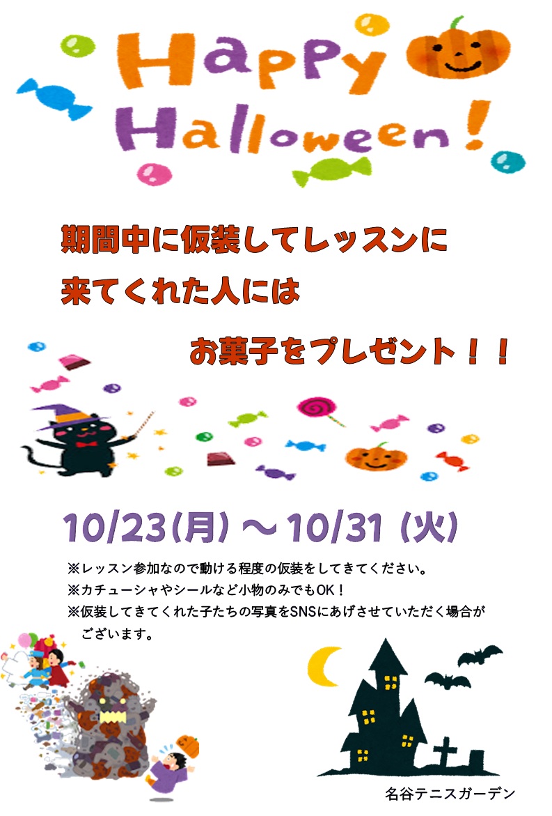 期間中、スクールにハロウィンの仮装をしてきていただいた方にお菓子をプレゼント!