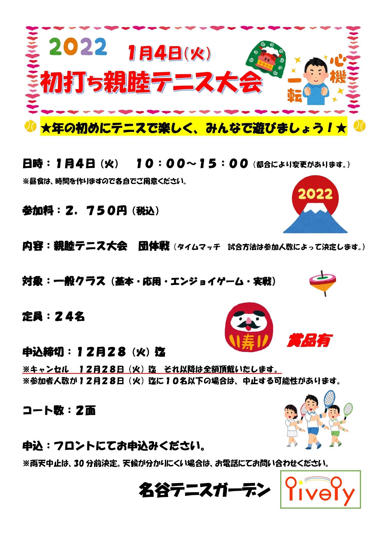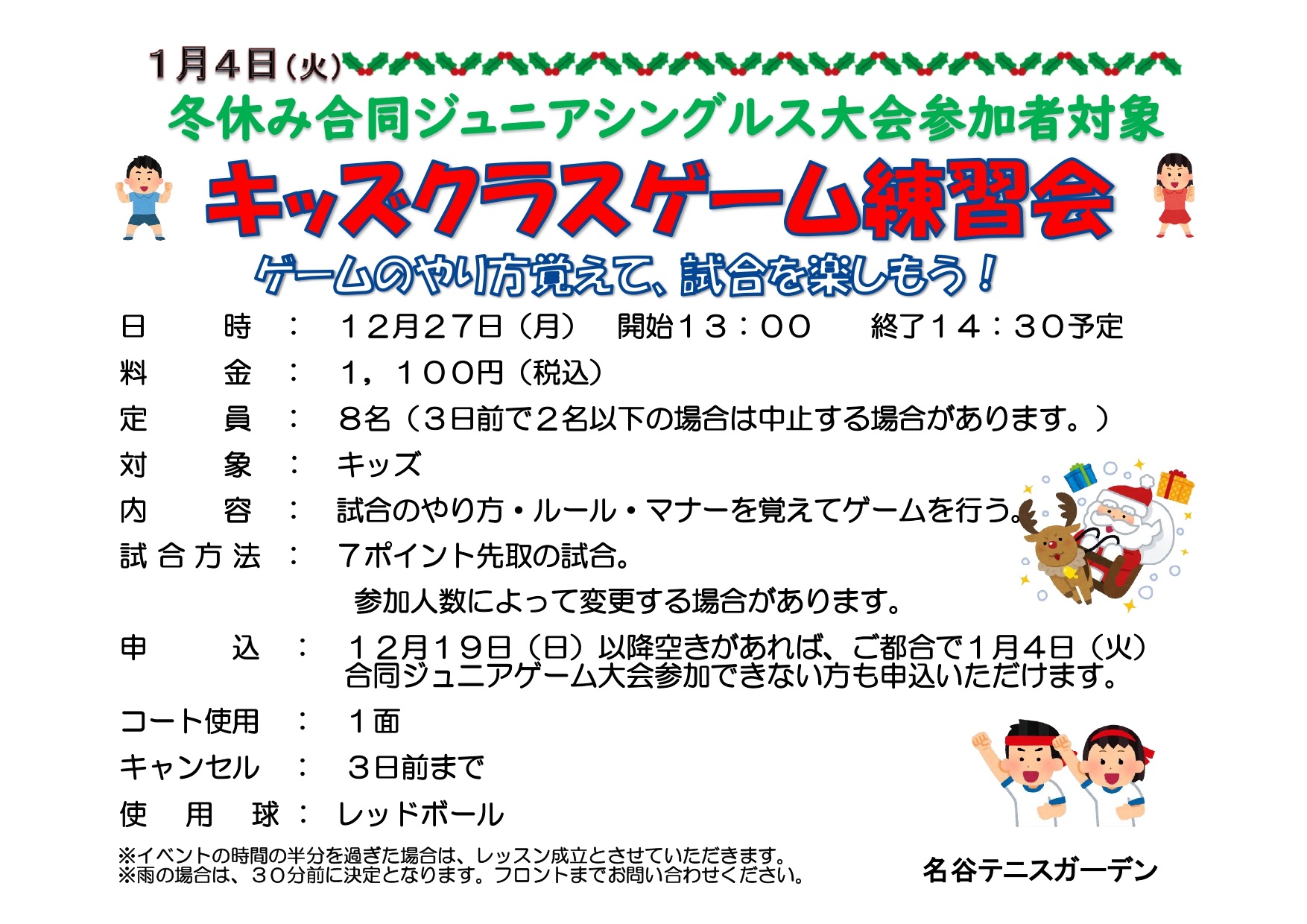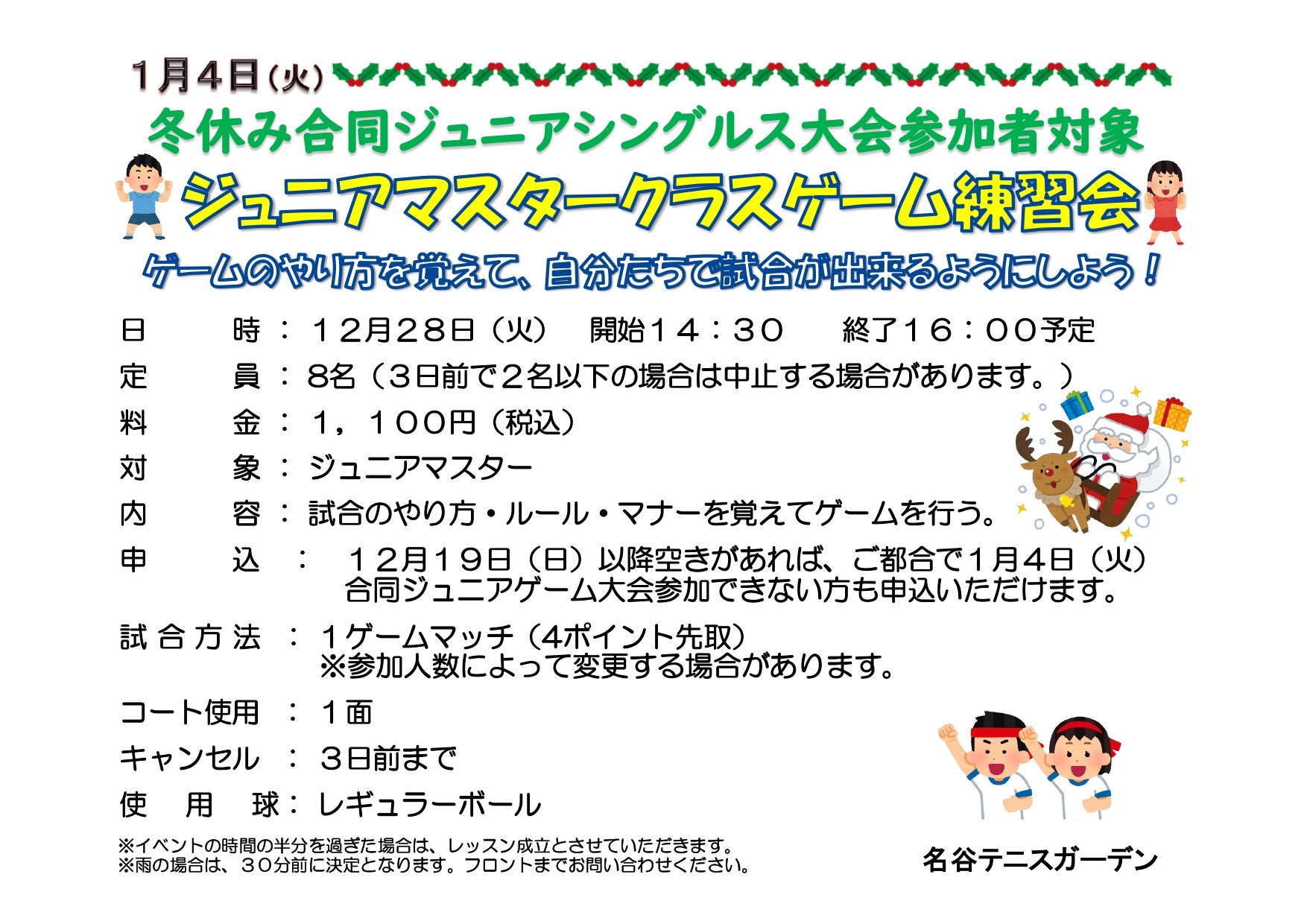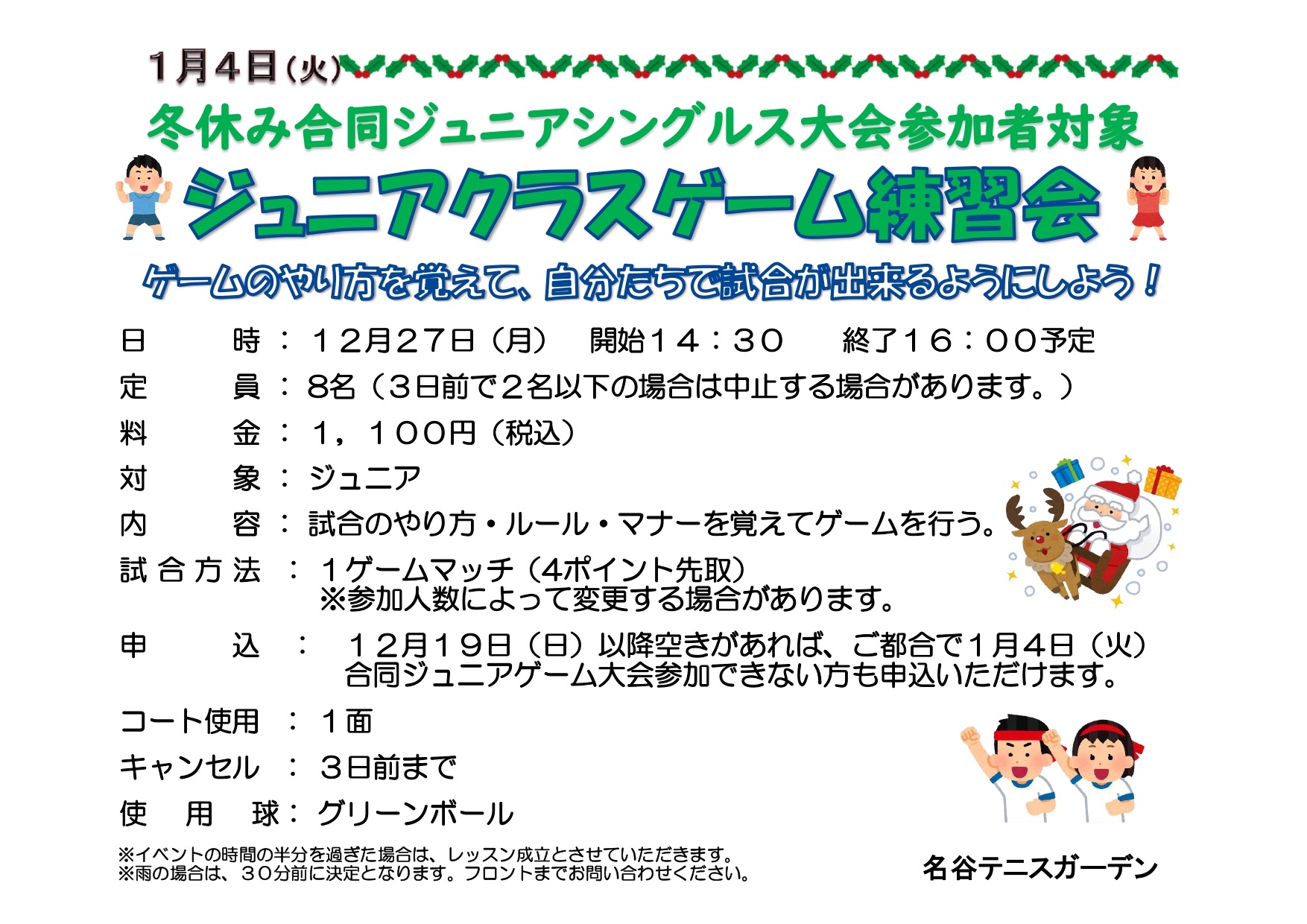 参加希望者の方は、1月4日(火)イベント前に各レベルゲーム練習会を行い