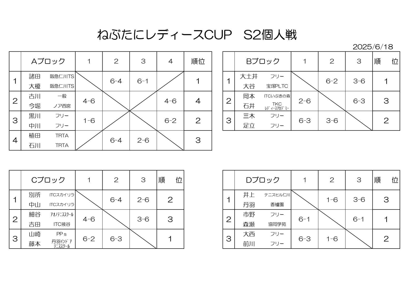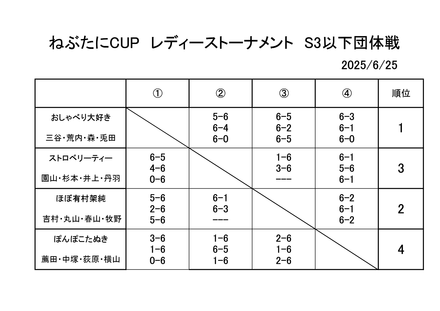 6/25(水) ねぶ谷レディースカップ S3以下団体戦を開催しました