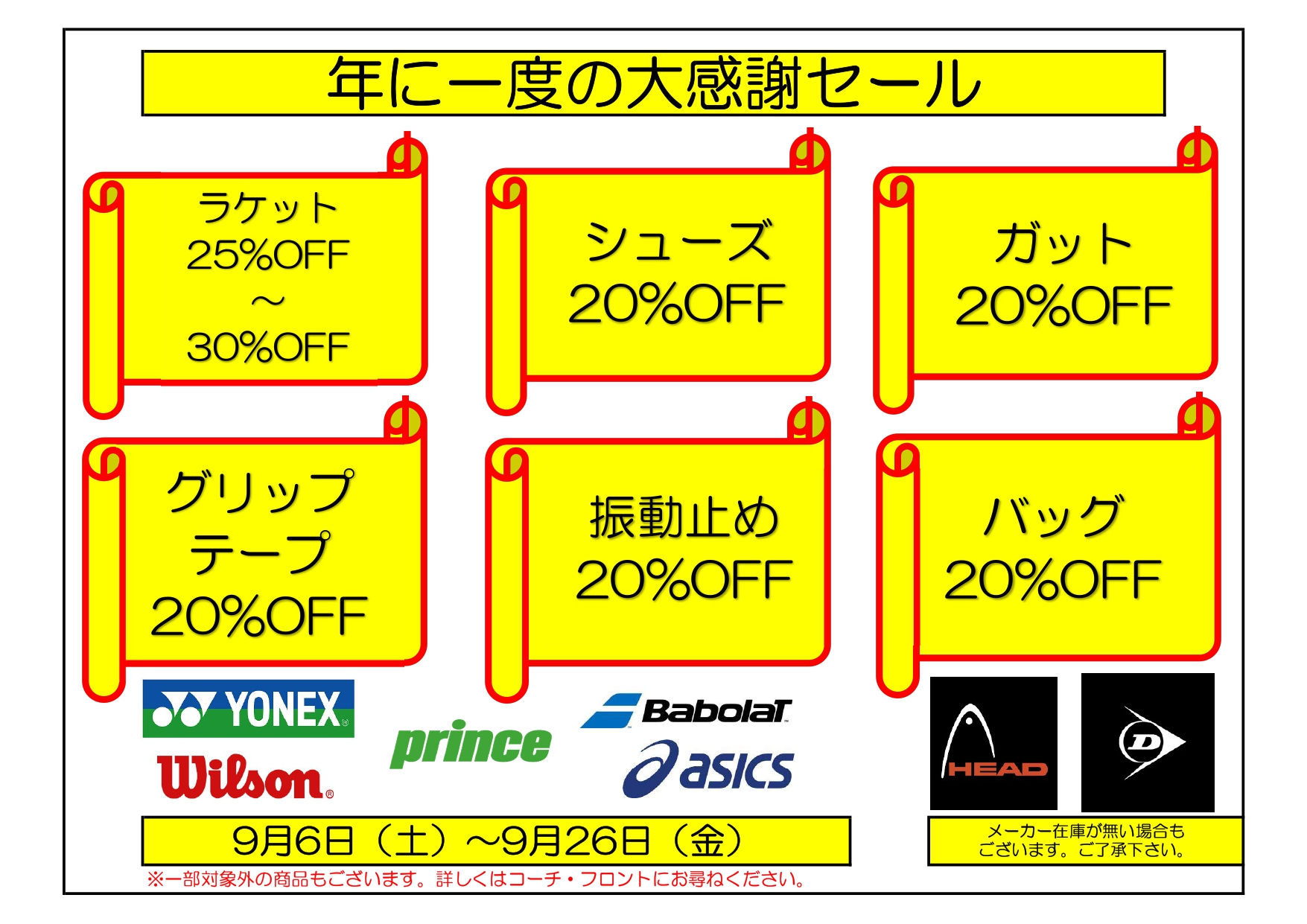 9/6(土)~9/26(金)『大感謝セール』開催します。