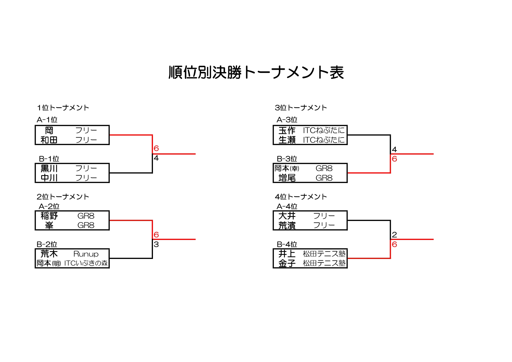 9:00~ 1面、11:00~ 1面、13:00~ 3面、15:00~ 2面