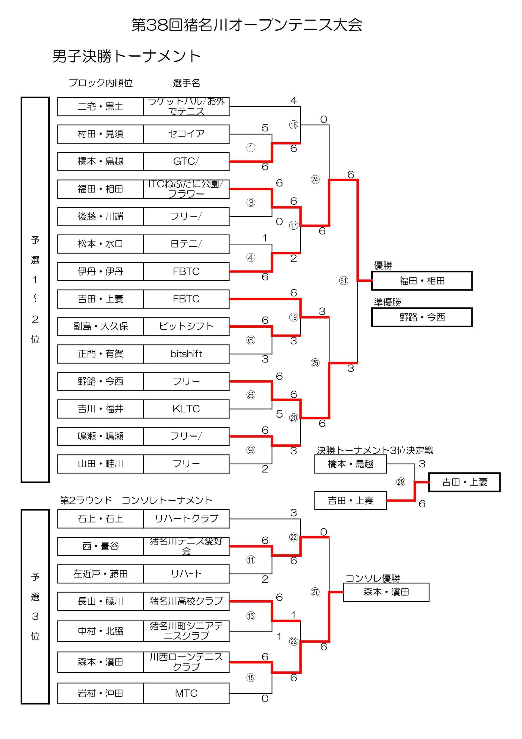 9月22日(日)猪名川オープンテニス大会 男子ダブルスの部において、