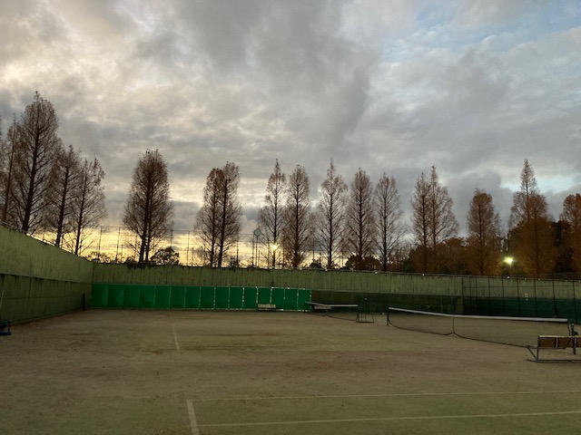 一昨日の雨風でメタセコイア落ち葉が一気にコートに落ちました