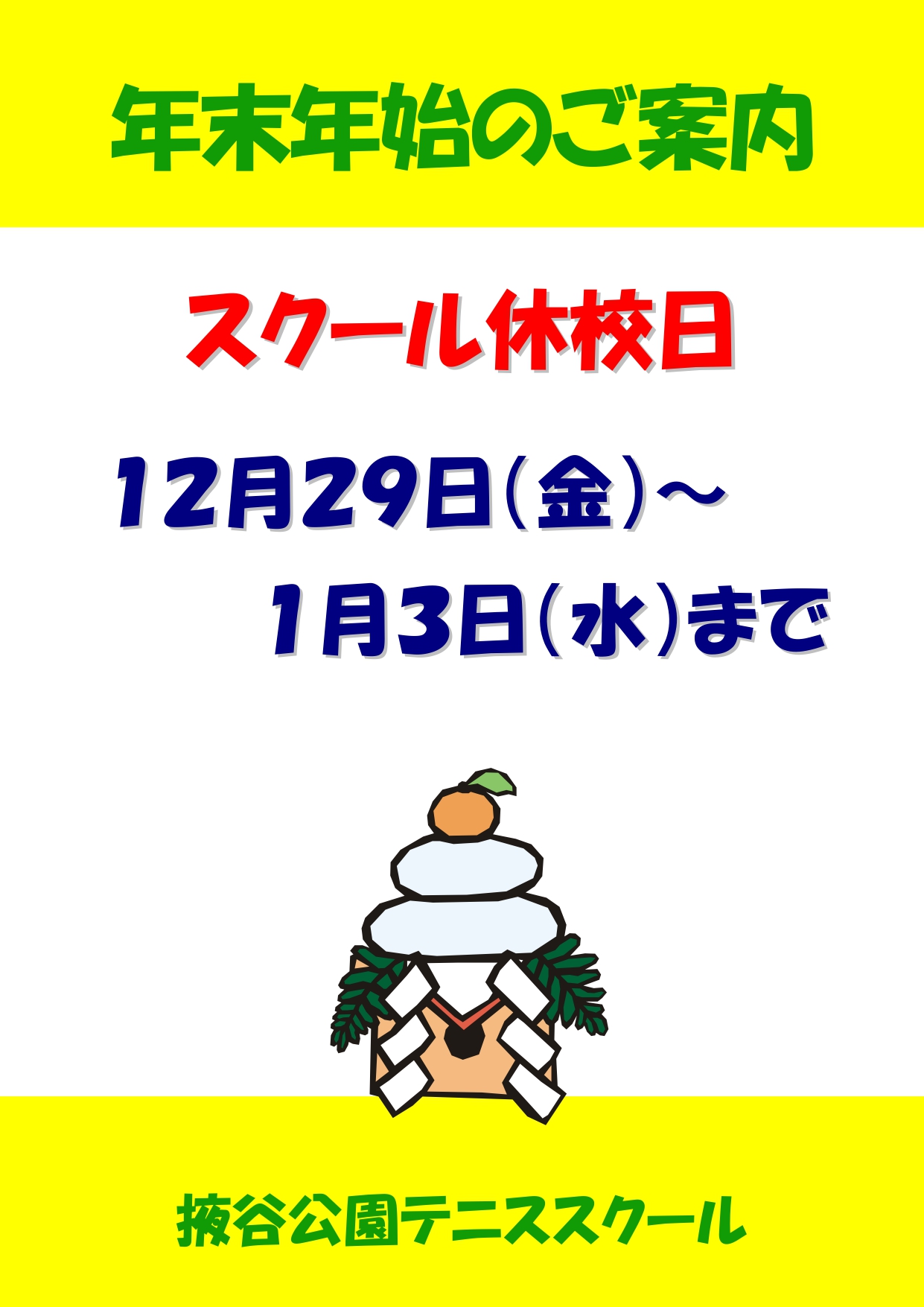 ねぶ谷公園テニススクールより、年末年始の営業日についてのお知らせです。