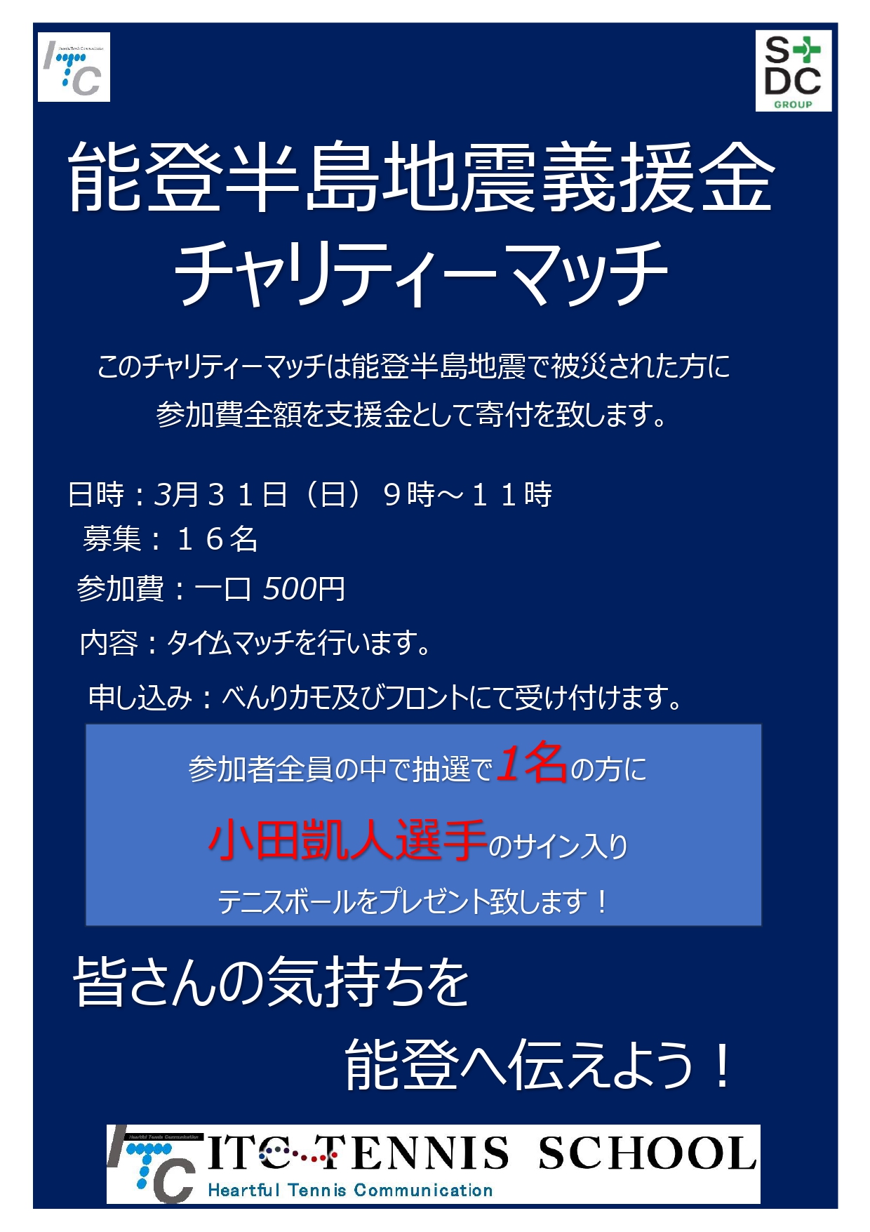この度『能登半島地震義援金チャリティーマッチ』を開催することになりました。