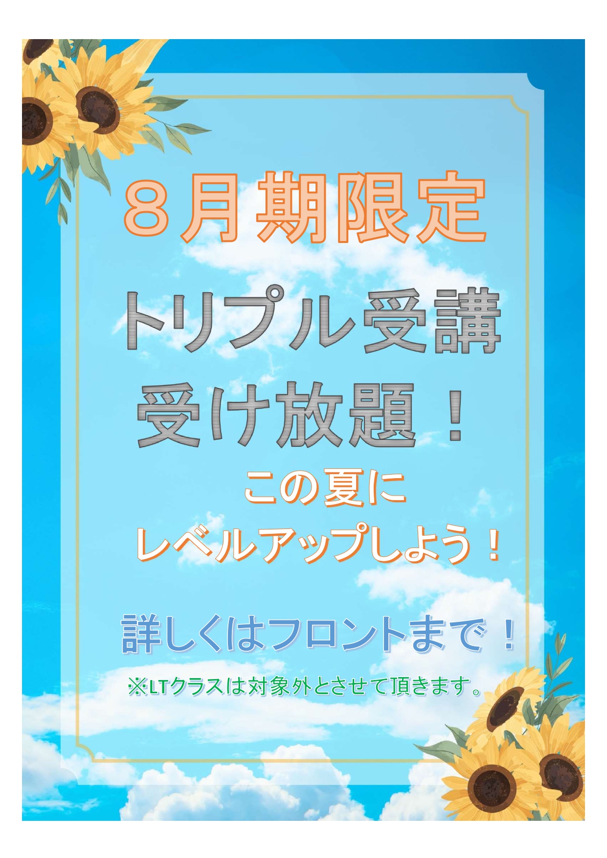8月期トリプル受講ご希望の方は、出来るだけ7/26(金)までにお申込みください