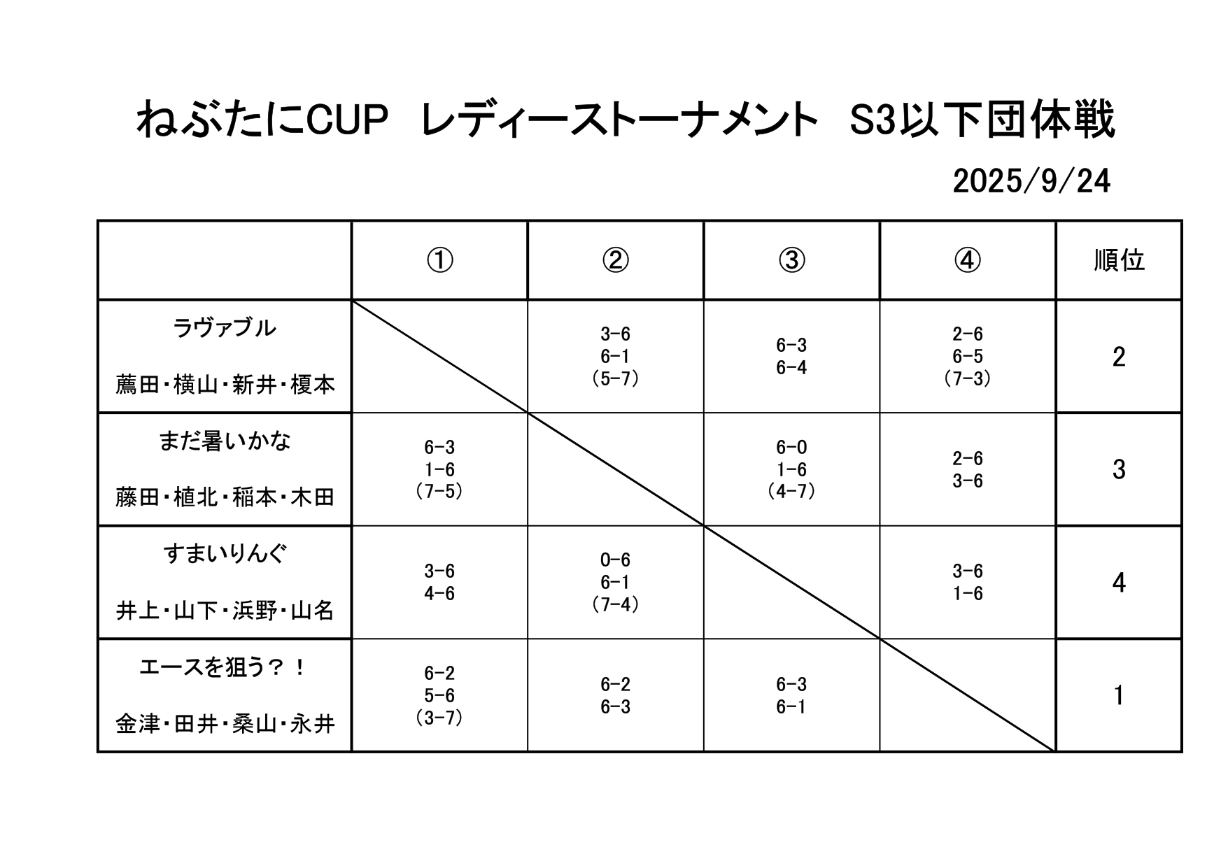 9/24(水)ねぶ谷レディースカップS3以下個人戦を開催しました