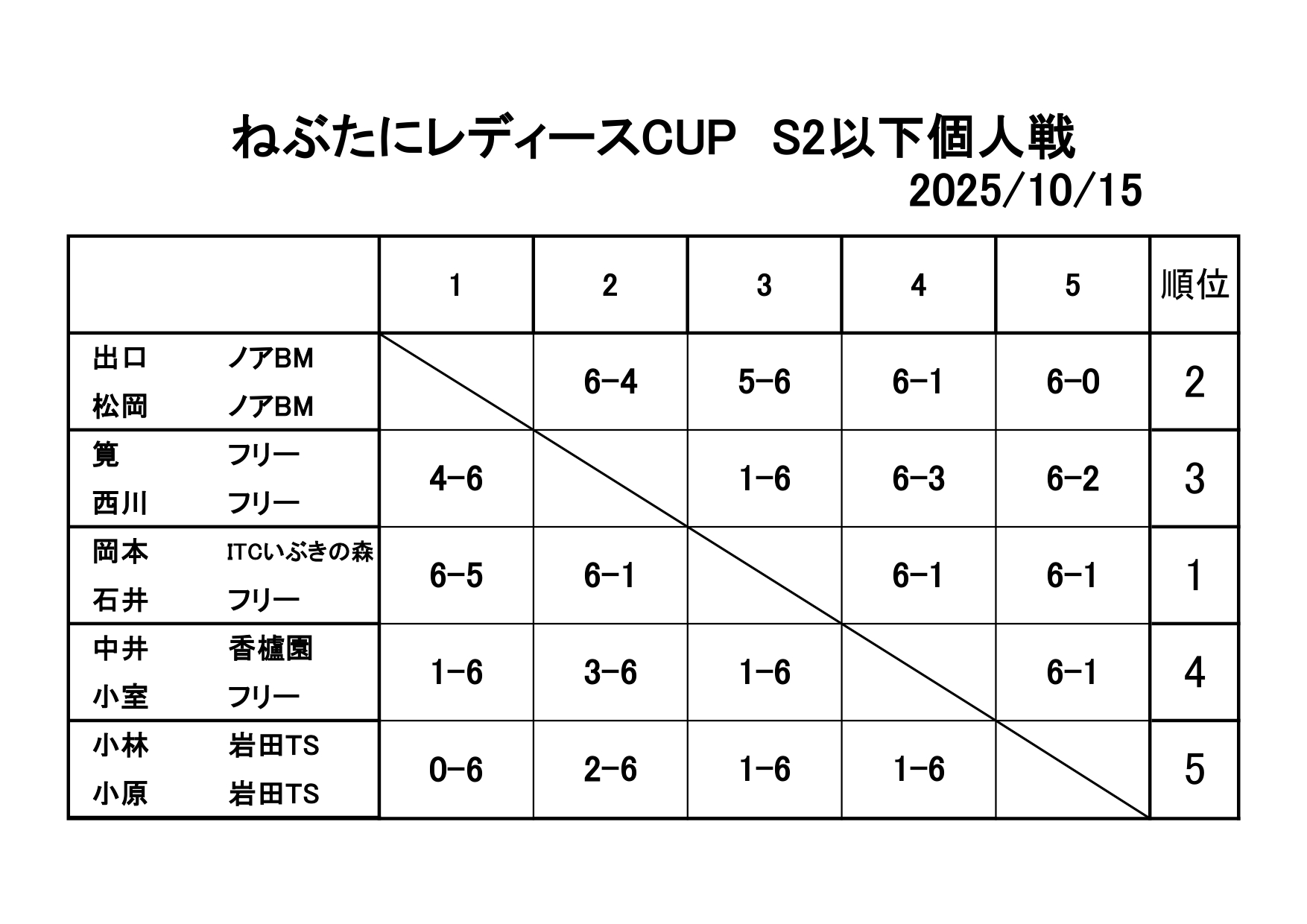 10/15(水)ねぶ谷レディースカップS2以下個人戦を開催しました