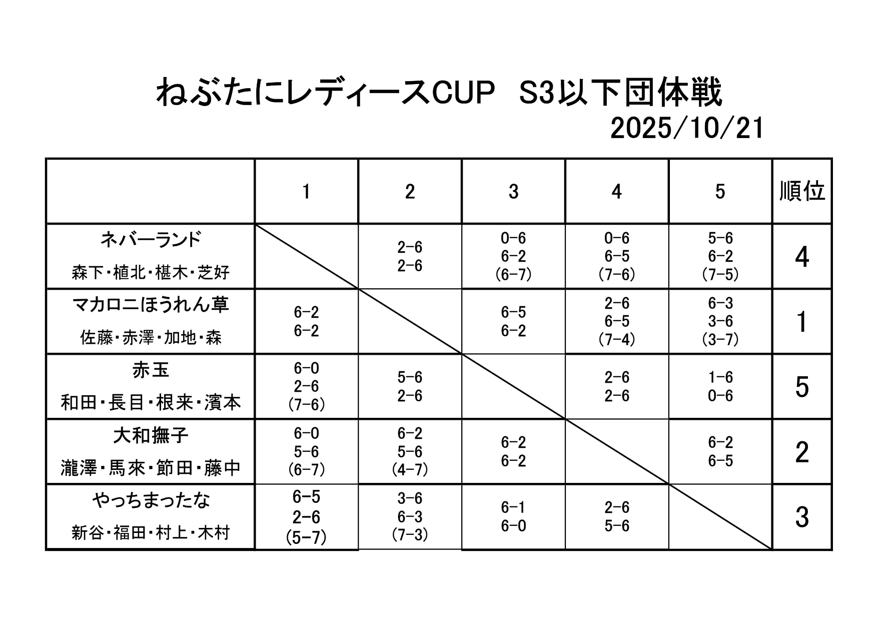 10/21(火) ねぶ谷レディースカップS3以下団体戦を開催しました