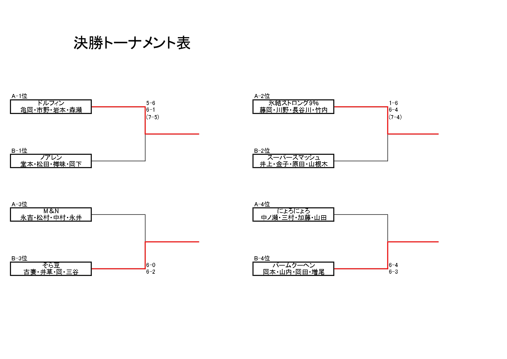 9:00~ 4面、11:00~ 4面、13:00~ 3面、15:00~ 6面