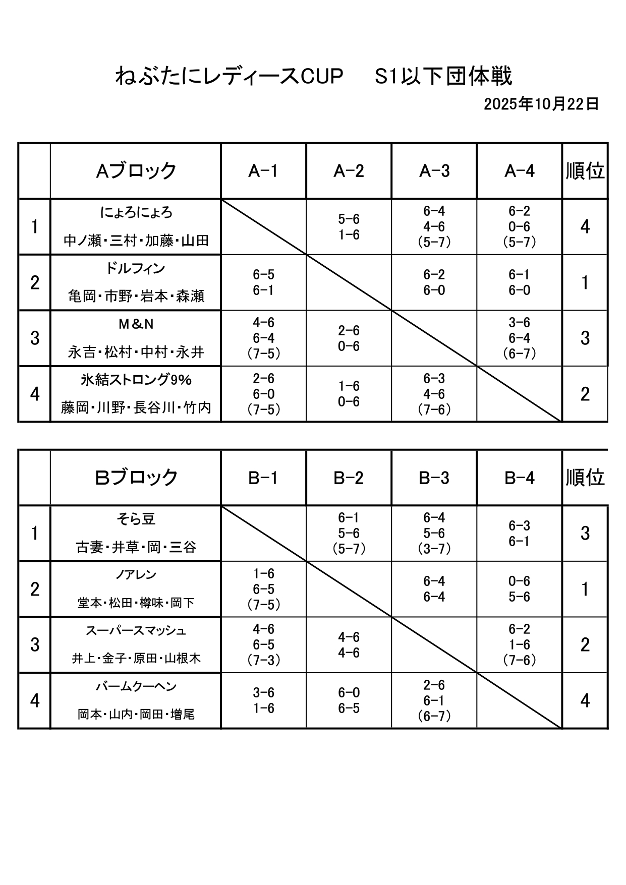 10/22(水) ねぶ谷レディースカップS1団体戦を開催しました