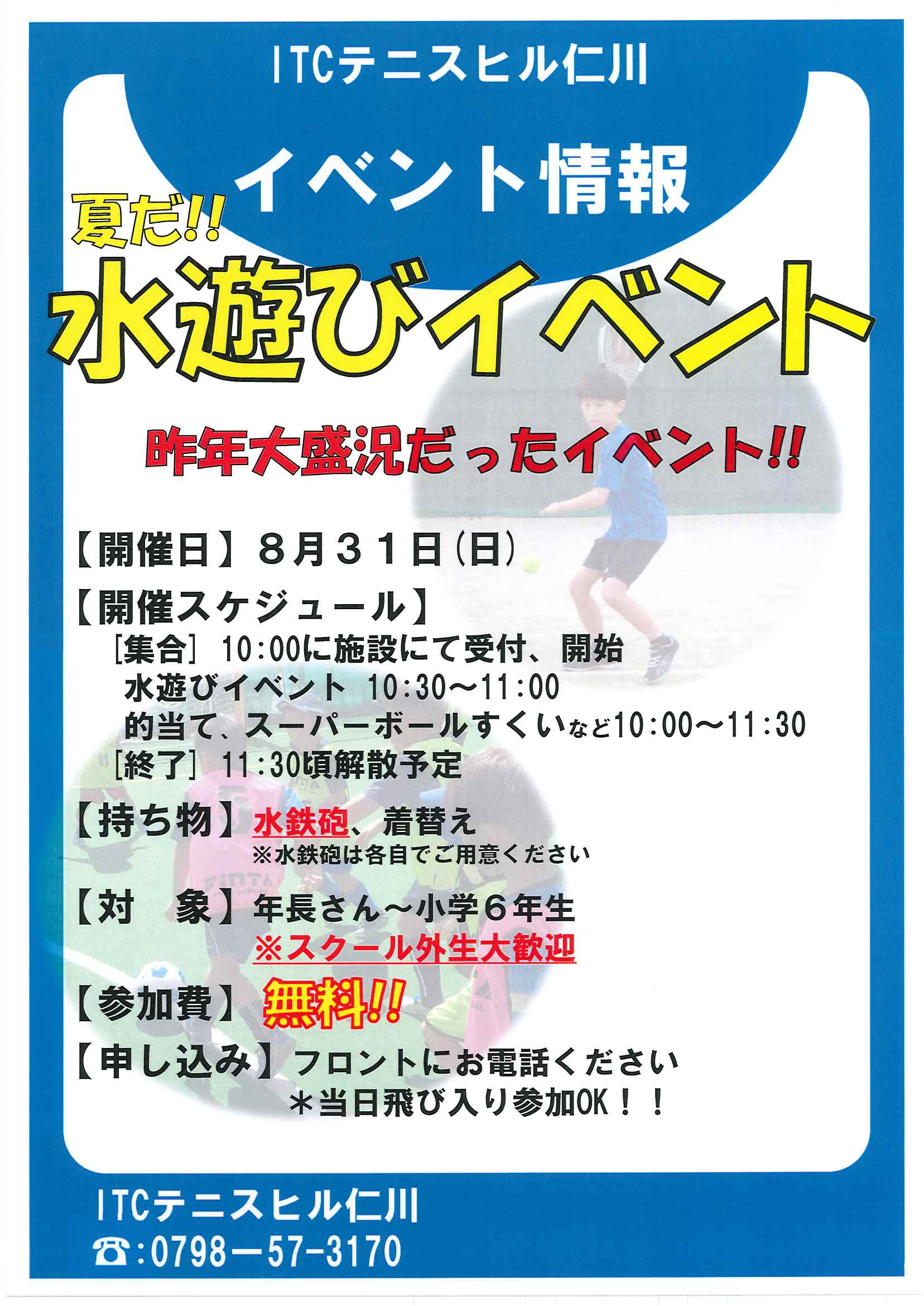 昨年大盛況でしたイベント、〖夏だ!水遊びイベント〗を開催します